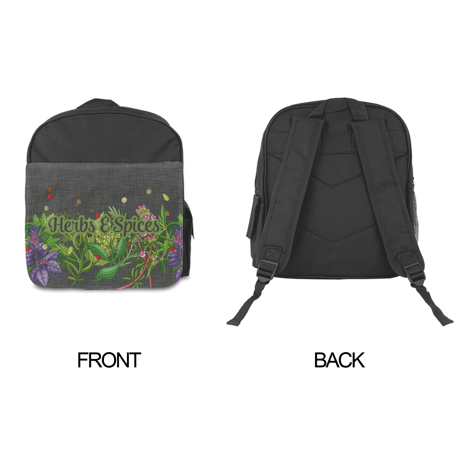 The backpack is a small size perfect for toddlers up to Kindergarten age. The zipper main pouch can hold most of their items and they have one side pocket with a flap to close it and the other side has a mesh pocket perfect for a water bottle. The outside has a customizable flap with a smaller pouch to hold more items. The straps are adjustable to fit your toddlers shoulders and they have a loop on top for hanging for storage.