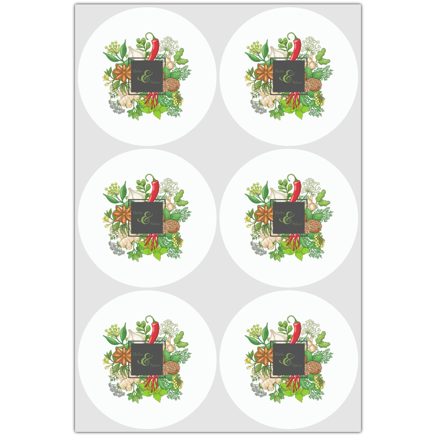 The design features an adorable frame of illustrated peppers, garlic, ginger, and other herbs. The background is a subtle texture in a charcoal color. A fun ribbon made with other spices and herbs makes the coordinating design. Both are easily personalized.