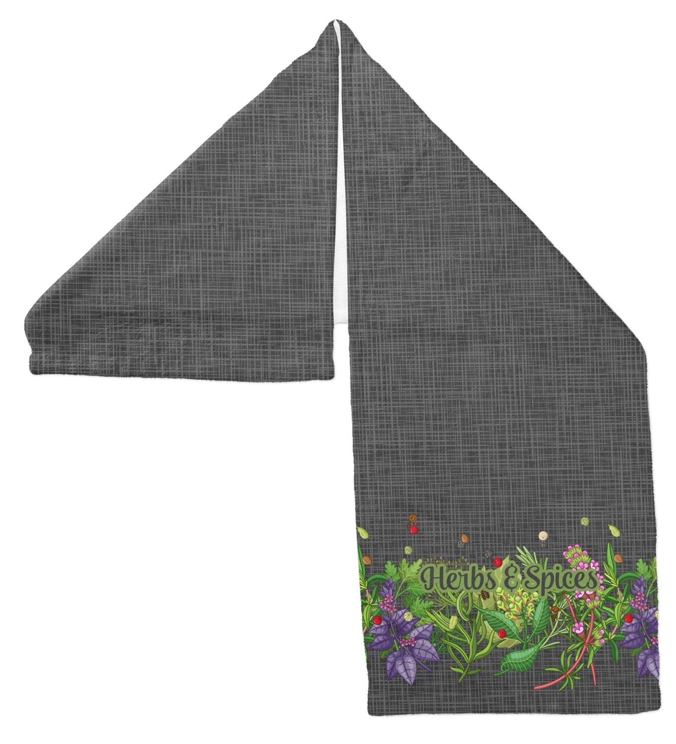 The design features an adorable frame of illustrated peppers, garlic, ginger, and other herbs. The background is a subtle texture in a charcoal color. A fun ribbon made with other spices and herbs makes the coordinating design. Both are easily personalized.