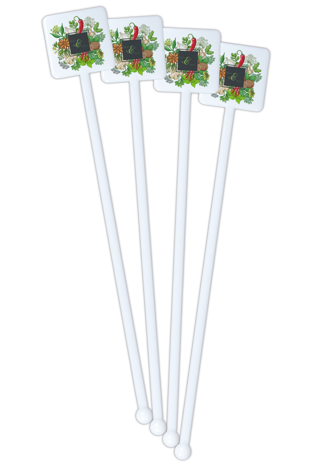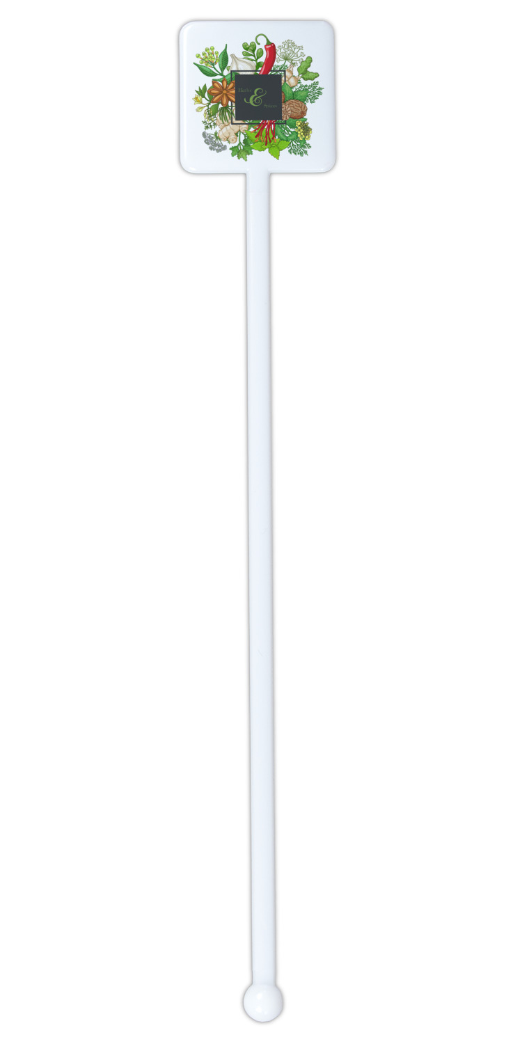 The design features an adorable frame of illustrated peppers, garlic, ginger, and other herbs. The background is a subtle texture in a charcoal color. A fun ribbon made with other spices and herbs makes the coordinating design. Both are easily personalized.