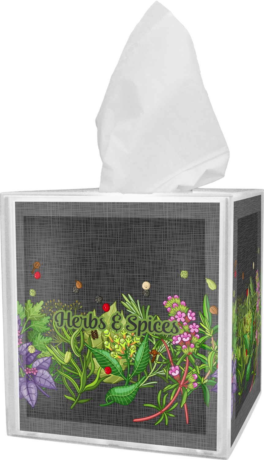 These tissue holders are built from durable acrylic and display your unique personalization on fine-quality vinyl inserts placed within the four sides and top. The box features two pieces, allowing you to easily switch out tissue boxes. On the sides, youll find ridges that ensure the top and base fit securely in place. The bottom of these tissue box holders has four, rubber, non-slip pads to prevent the box from scuffing any surface you decide to display it on. Each box can fit a standard 5 by 5-inch box of tissues.