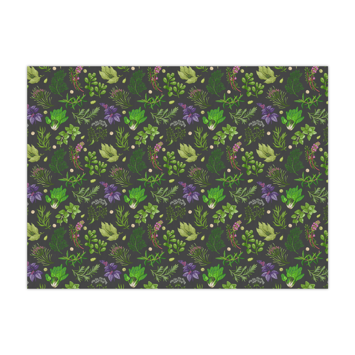 The design features an adorable frame of illustrated peppers, garlic, ginger, and other herbs. The background is a subtle texture in a charcoal color. A fun ribbon made with other spices and herbs makes the coordinating design. Both are easily personalized.