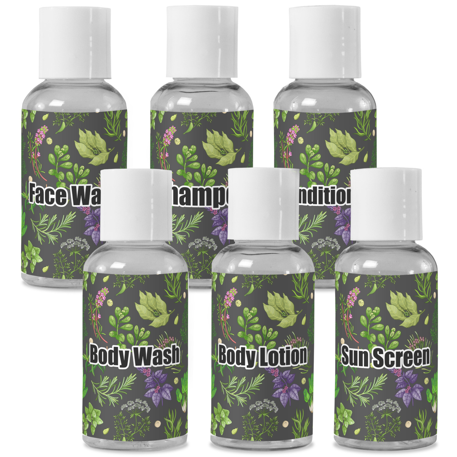 These soap and lotion travel bottles are the perfect place to start. Each set comes with 6 clear plastic bottles with white pop top lids. The bottles are cylindrical and can hold approximately 2.7oz. Perfect for plane travel!