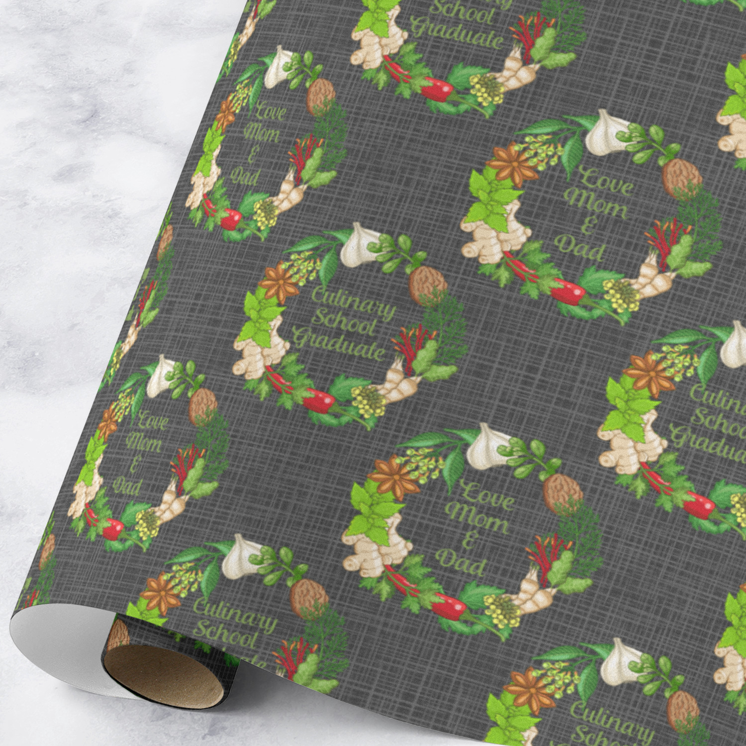 Our rolls are printed on premium paper in in a satin or matte finish. The wrapping paper is scratch & water resistant; it is flexible and will resist cracking when folded or creased. We use 100% water based inks for the wrapping paper rolls.
