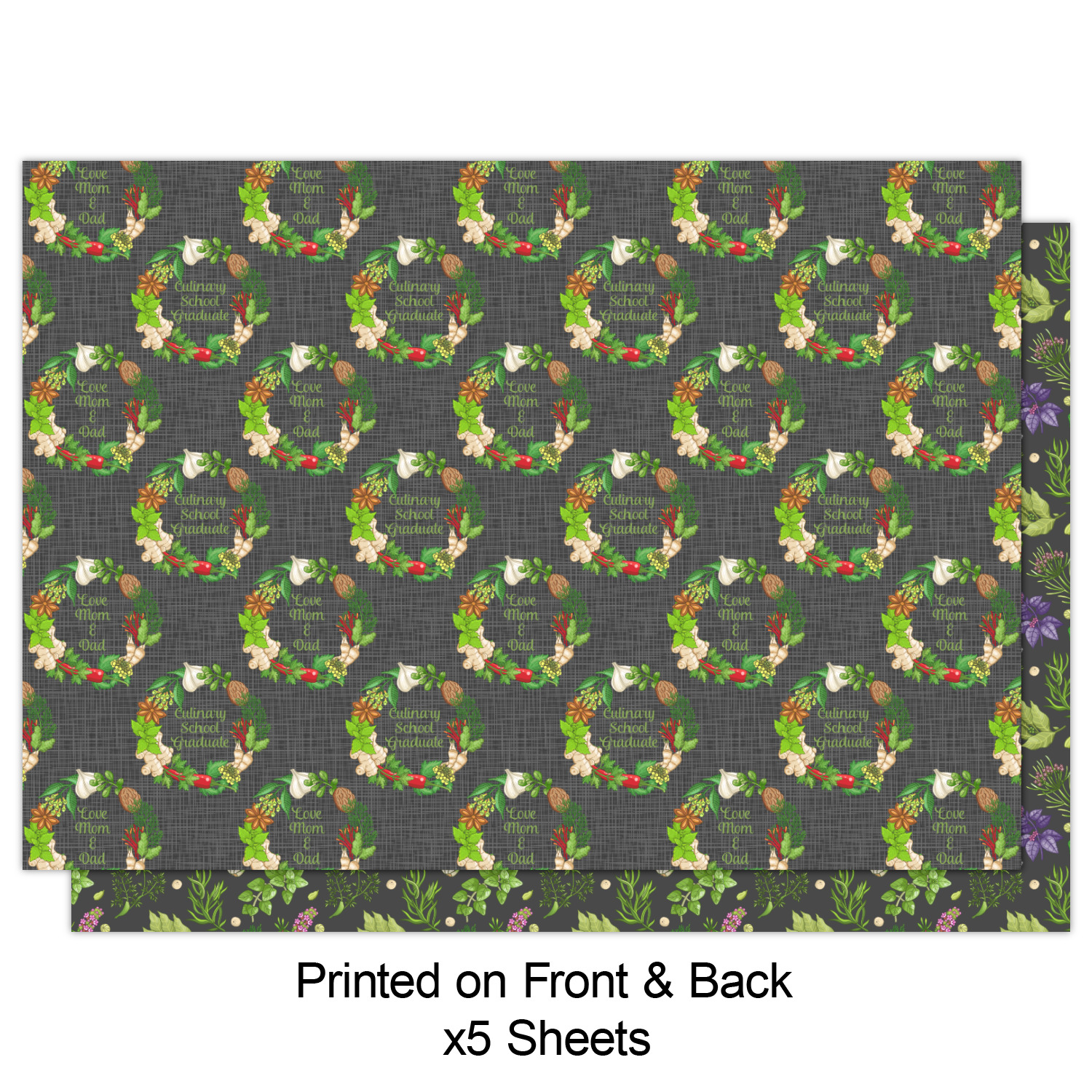 The second print style is double sided or reversible wrapping paper sheets. You can customize both sides of these wrapping paper sheets.