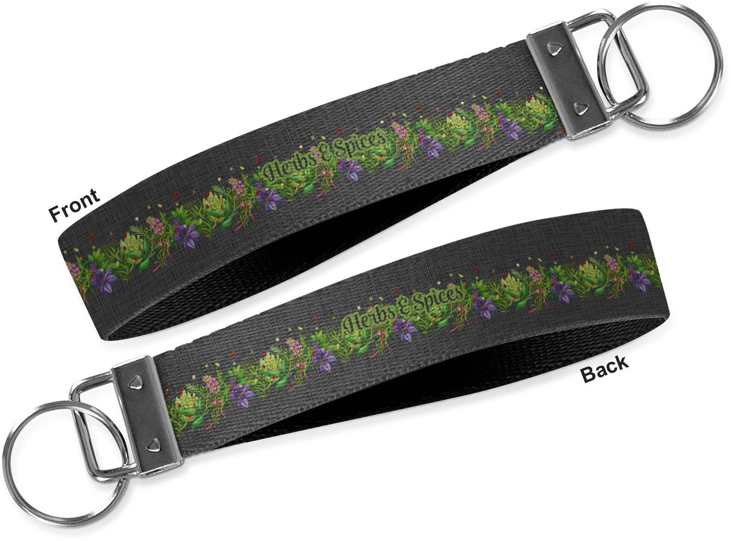 These key fob keychains are made from a polyester weave, right here in the USA. They feature a silver, metal clasp, attached to a round keyring. The piece gives the personalized wristlet a beautiful, finished look. Your customized design is printed on the outside of the keychain strap. We carry these wristlets in two sizes: small, which is 5 inches in width, and large, which is 5.5 inches in width.