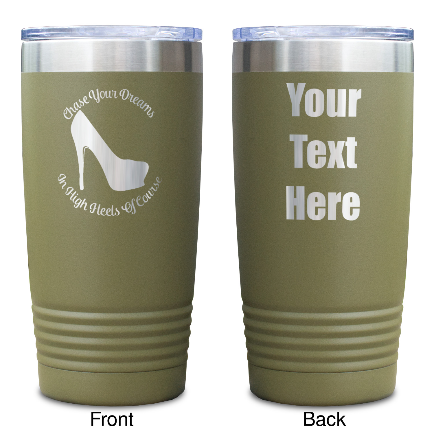 Available in 8 unique colors, these cups are crafted from 18/8 stainless steel and powder coated for their durable finish. With the 8 colors being Black, Pink, Red, Teal, White, Grey, Royal Blue, and Olive Green, you are sure to find a cup to fit your personality. You can chose to engrave on the front or the front and back of the cup. Use our design studio to design your own cup and we laser engrave it for you.