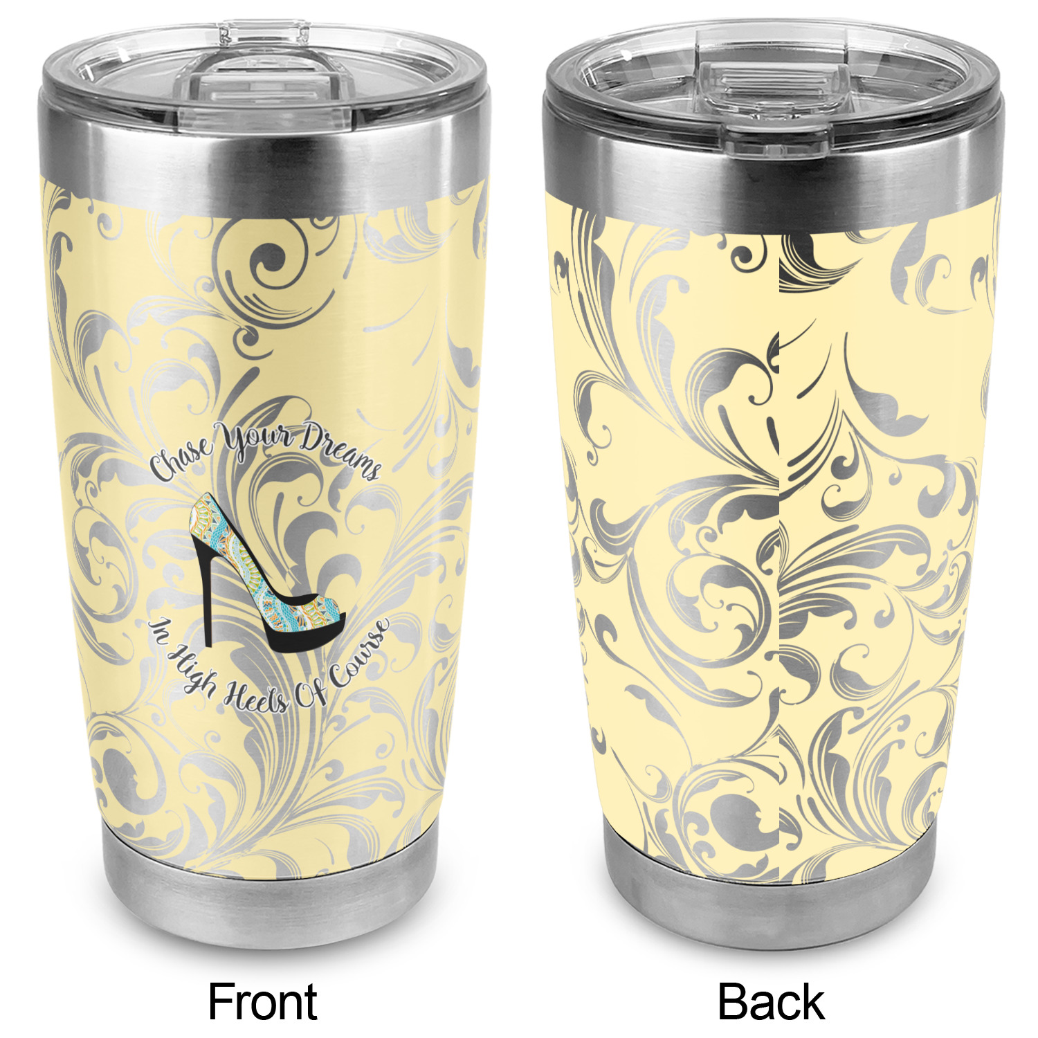 Made from a 20oz vacuum insulated stainless steel tumbler, these cups are perfect or cold or hot drinks. Standing at 6.75in tall, and 3.25in diameter (at the top) and 2.75in diameter at the base - these metal cups are perfect to fit in just about any cupholder for that on the go lifestyle.
