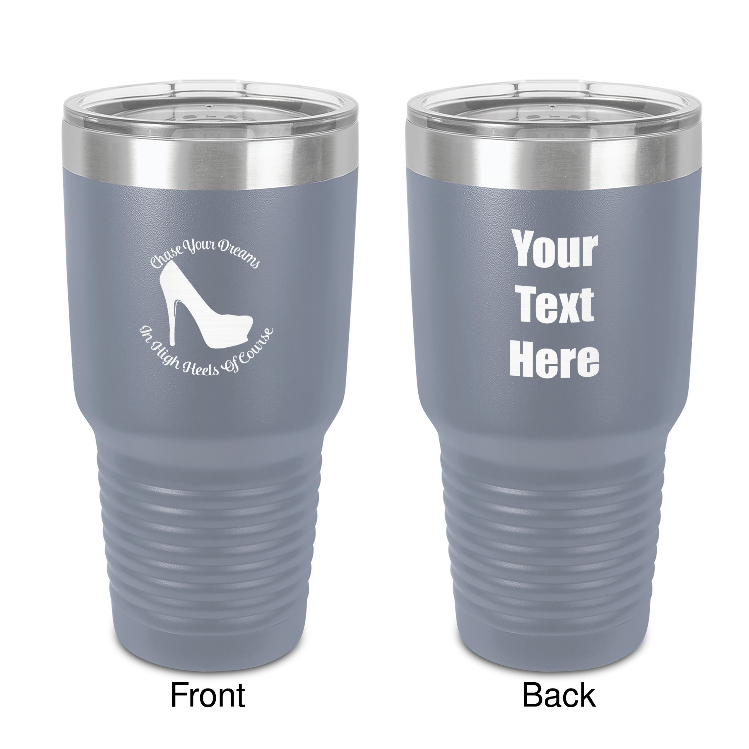 With our personalized 30 oz double wall stainless steel tumblers, you'll never have to settle for a plain, boring tumbler again! These tumblers will be a wonderful addition to your drinkware collection and will make those long commutes much brighter. Personalize one for yourself, or give these personalized tumblers as a gift to relatives, friends, or coworkers!
