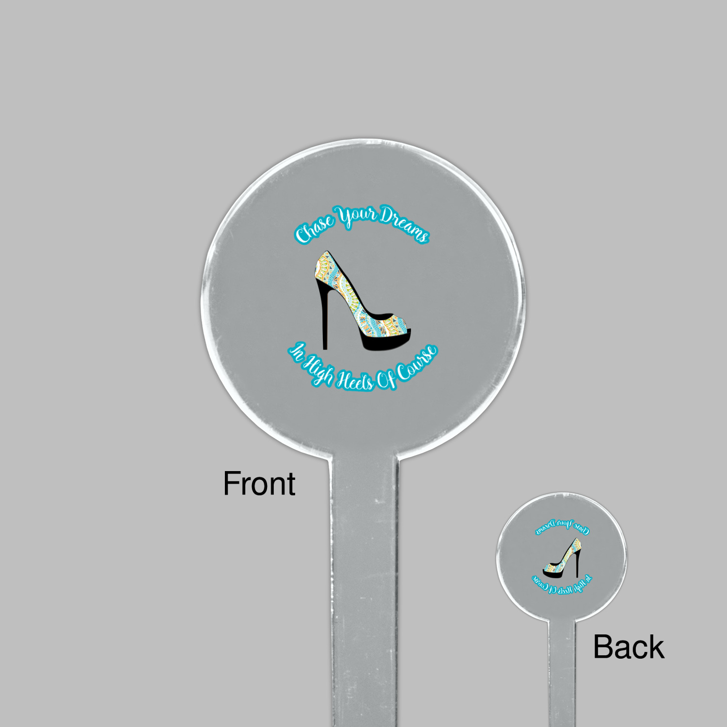 This High Heels Design with "Chase Your Dreams in High Heels Of Course" is simply beautiful. The design has a soft yellow leafy swirls background. The foreground is a beautiful stiletto high heel shoe filled with our abstract snakes pattern. We used our "graphic with arched text" style and have the words "Chase Your Dream" on top and "In High Heels of Course" on the bottom.