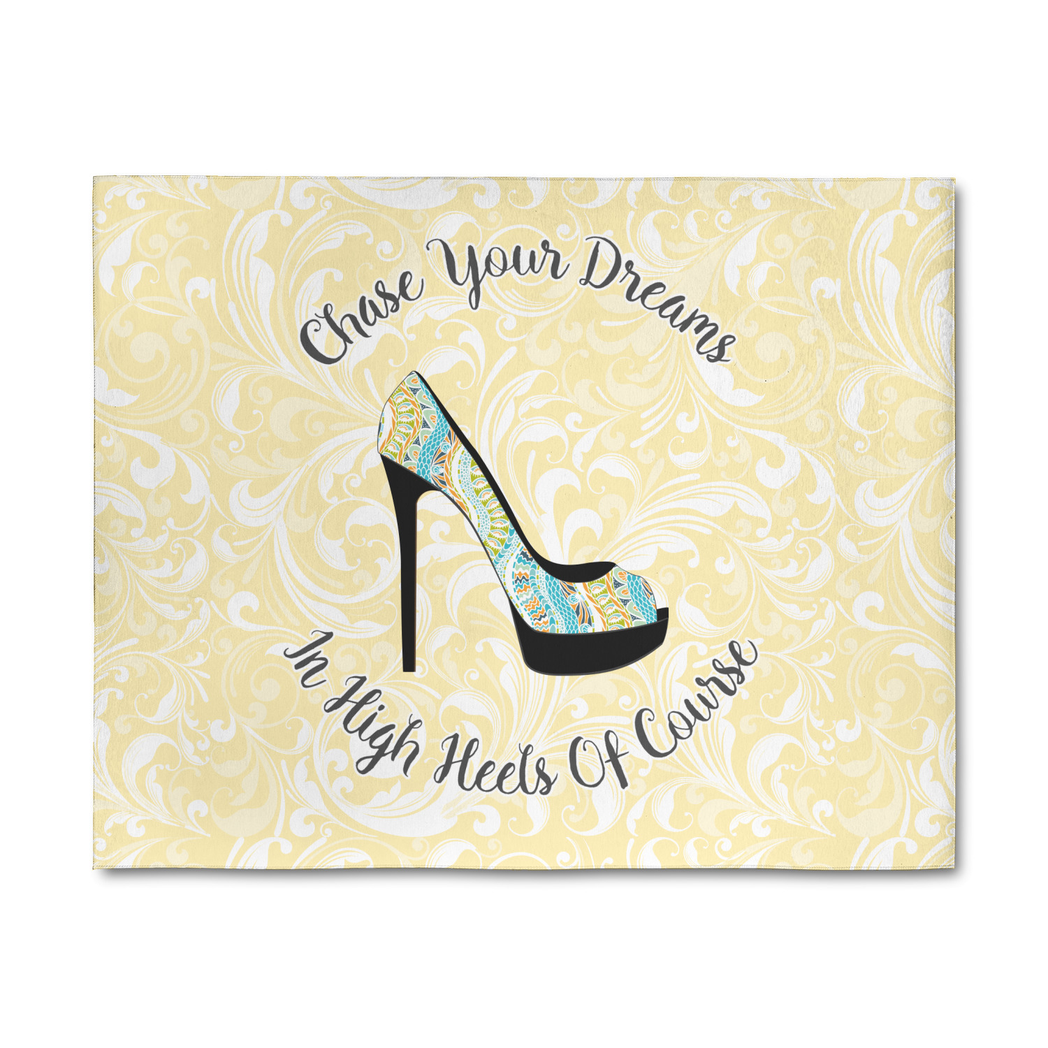 This High Heels Design with "Chase Your Dreams in High Heels Of Course" is simply beautiful. The design has a soft yellow leafy swirls background. The foreground is a beautiful stiletto high heel shoe filled with our abstract snakes pattern. We used our "graphic with arched text" style and have the words "Chase Your Dream" on top and "In High Heels of Course" on the bottom.