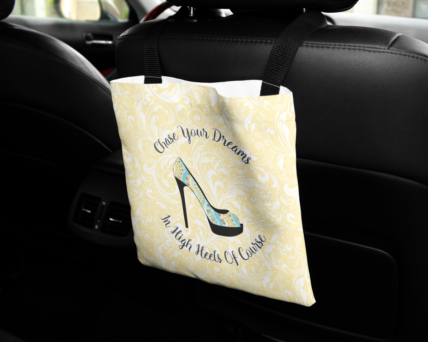 These car back seat organizers are sturdy tote-like bags, fabricated from a robust polyester, and features a single handle on the back side. The strap features an attachable velcro for easy attachment to headrests, grocery carts, car seats, and more. Simply undo the velcro, loop the strap around the headrest, reattach the velcro, and let the organizer hang from the front seat. These car organizers are the perfect means of increasing your backseat's legroom, while storing multiple items in one place for better accessibility. Each car back seat organizer measures at 10 by 10 inches, and features your personalized design printed across its front and back.