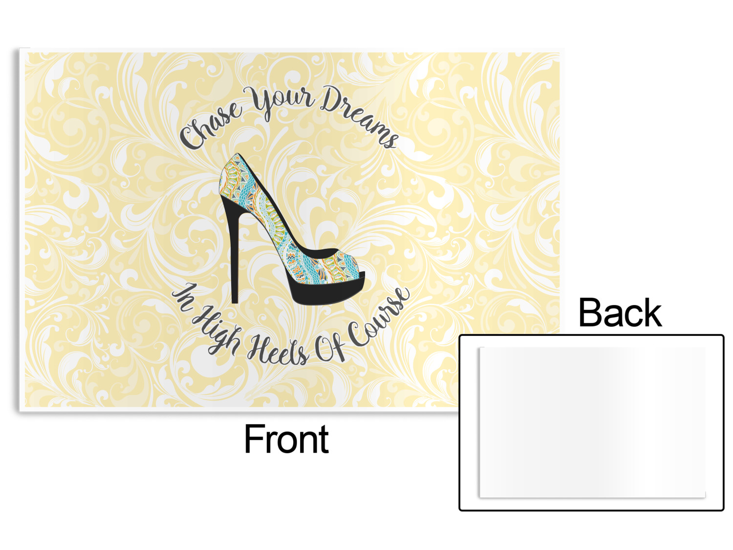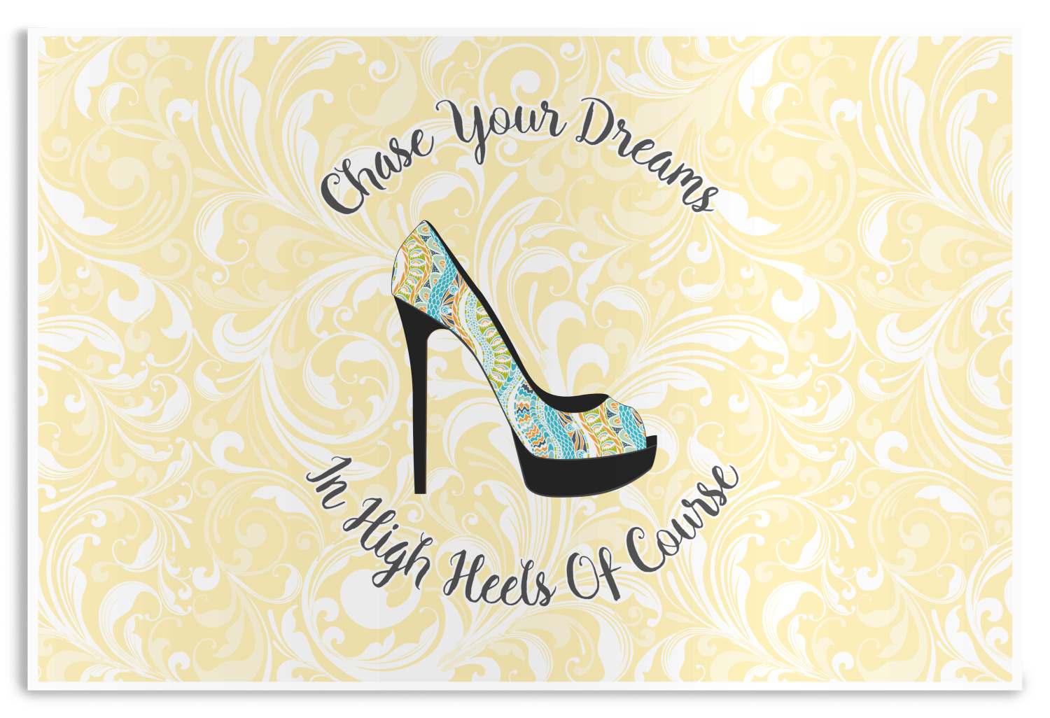This High Heels Design with "Chase Your Dreams in High Heels Of Course" is simply beautiful. The design has a soft yellow leafy swirls background. The foreground is a beautiful stiletto high heel shoe filled with our abstract snakes pattern. We used our "graphic with arched text" style and have the words "Chase Your Dream" on top and "In High Heels of Course" on the bottom.