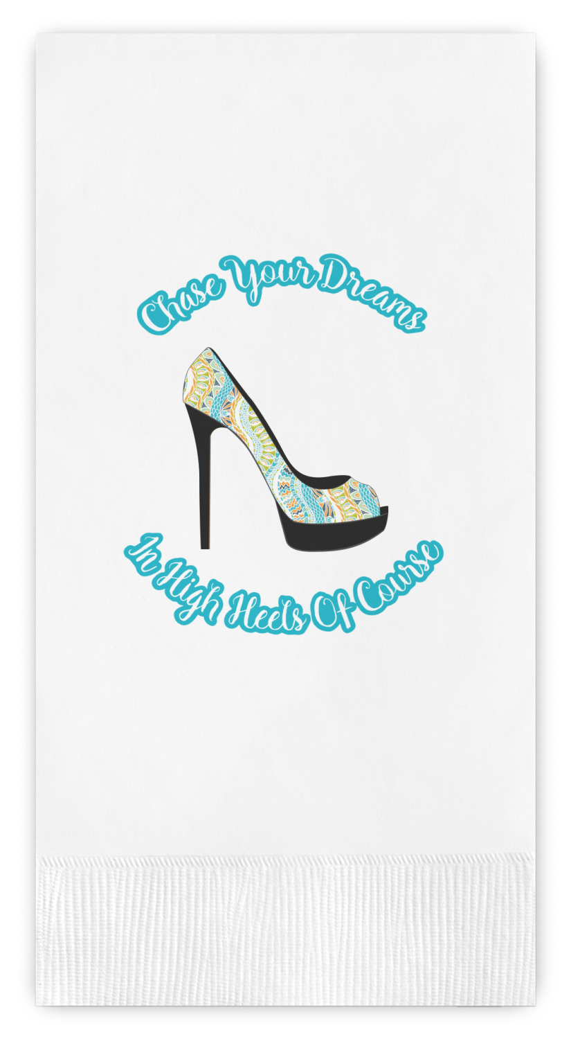 This High Heels Design with "Chase Your Dreams in High Heels Of Course" is simply beautiful. The design has a soft yellow leafy swirls background. The foreground is a beautiful stiletto high heel shoe filled with our abstract snakes pattern. We used our "graphic with arched text" style and have the words "Chase Your Dream" on top and "In High Heels of Course" on the bottom.
