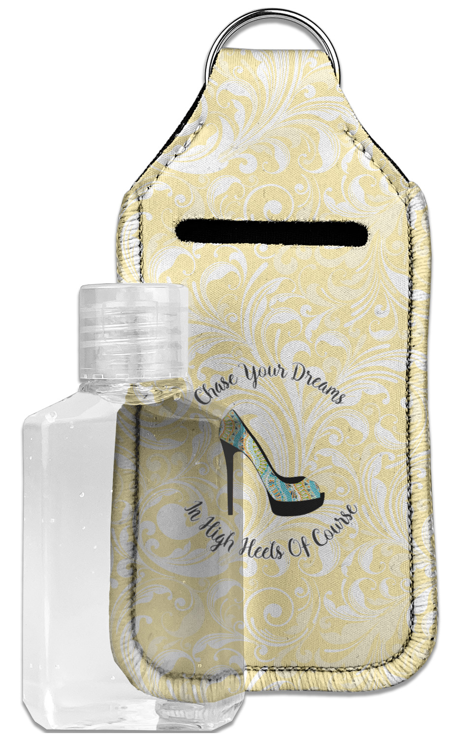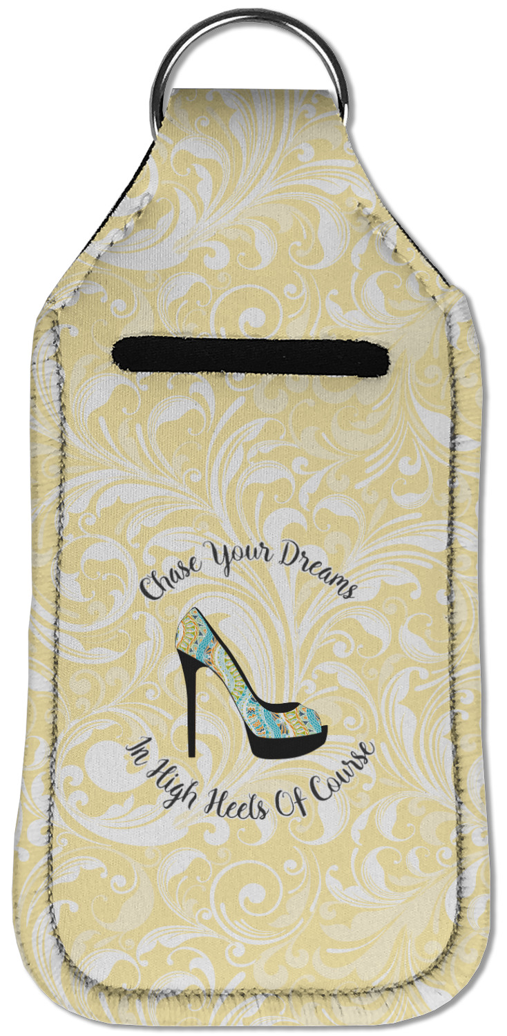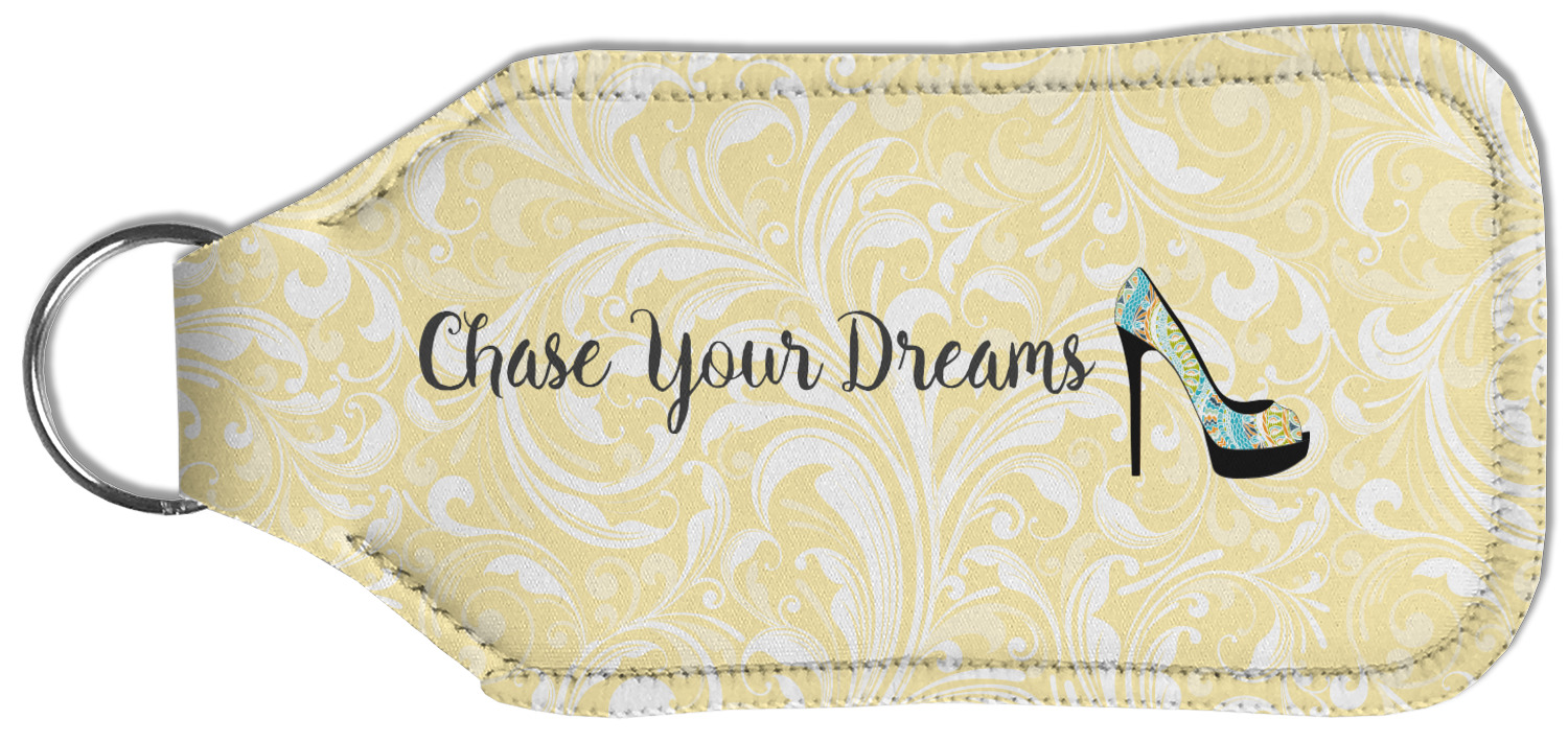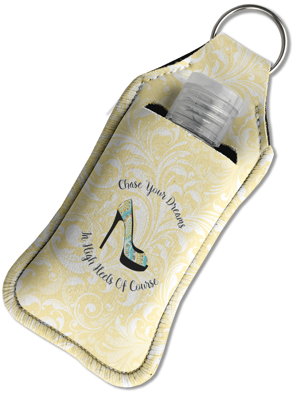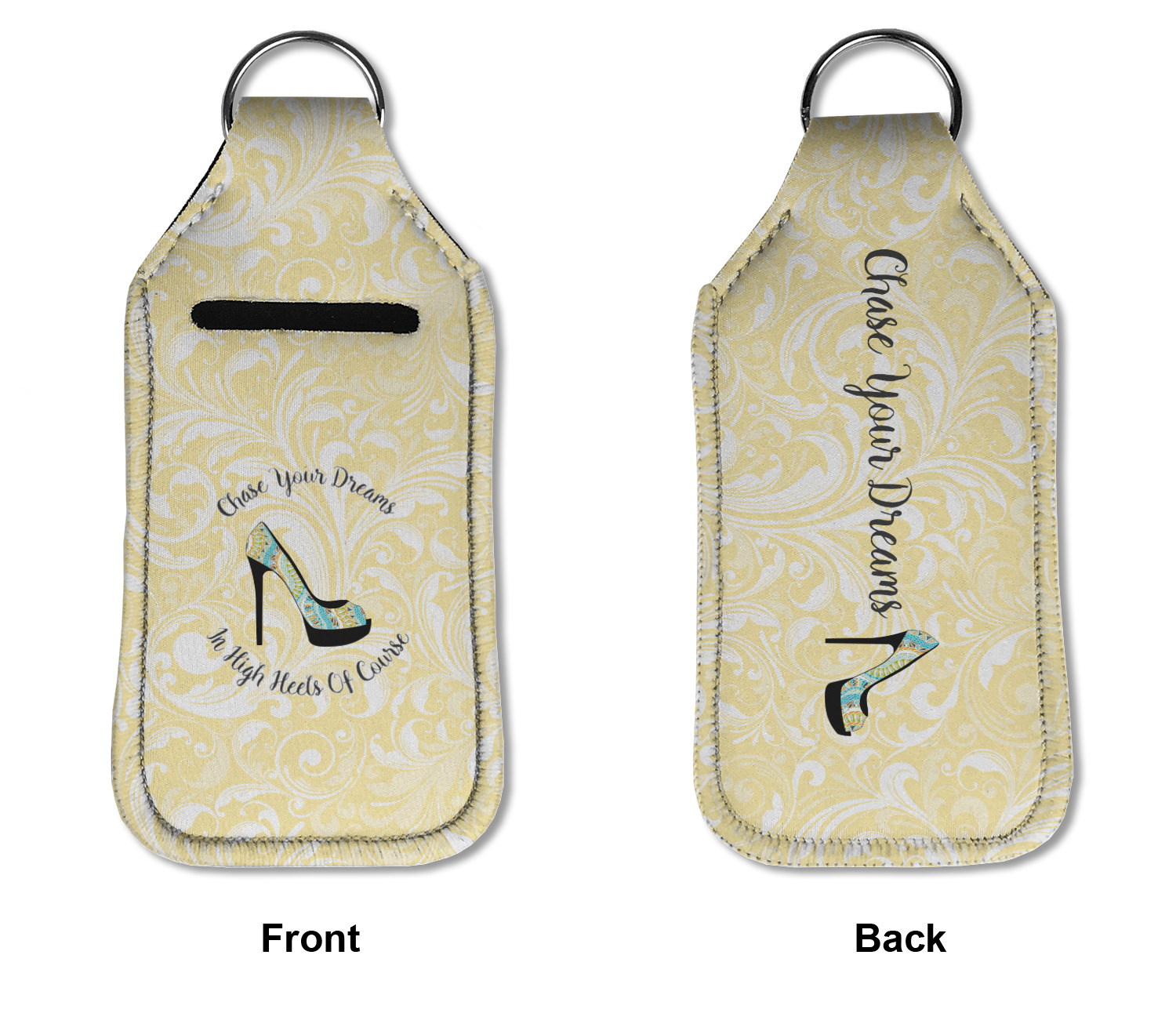 Each hand sanitizer holder comes with its own empty travel-sized, refillable hand sanitizer sure to fit snug in your customized sanitizer case! Our hand sanitizer cases are a durable, yet soft neoprene material sure to last any daily activities or travel agenda. Customize and personalize a hand sanitizer bottle holder with one of our two sizes - small (4.25" x 2.25") or large (5.5" x 2.5"). Each travel sanitizer holder comes with a keyring for attachment on bags, keys, or more!