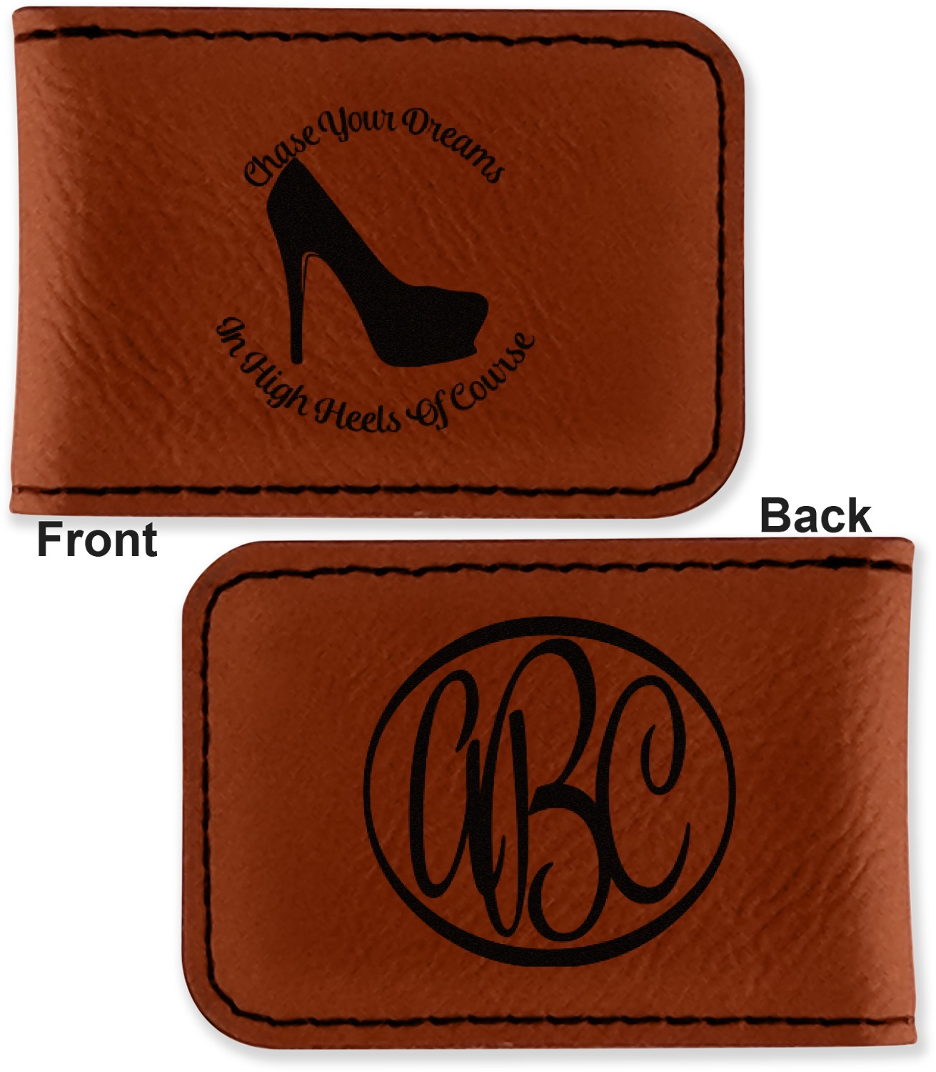 Your money clip will be laser engraved so that the design you choose will come out black. Find a fun graphic, monogram, or font to use to personalize your money clip either on just the front or the front and the back.