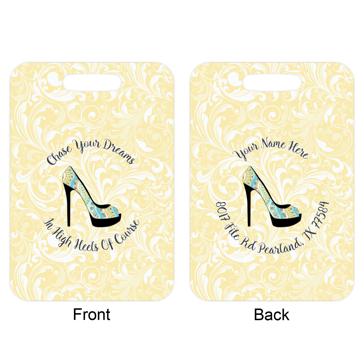 These metal luggage tags are printed on both sides; the front is printed with the design of your choice - and can be personalized with your name, name & initial or your monogram. The back can have as much or as little of your contact information as you desire - your name, your address, city, zip & state, you can also include your phone number and email address. Customize it exactly the way you want it!