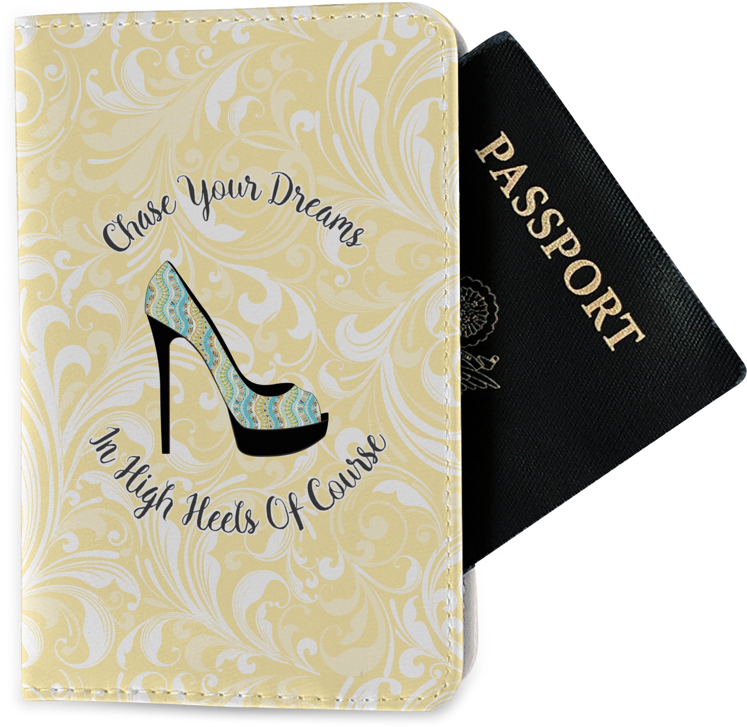 The passport holder has a beautiful inside made of faux leather, while the outside is a smooth slick vinyl like material printed with your personal design.