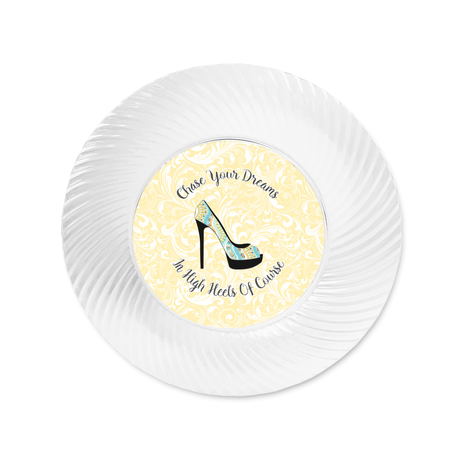 Made from a beautiful clear plastic plate as a base, your design is printed to the underside of the plate. The outside of the plate has a classic swirl texture to it for a high quality look and feel.