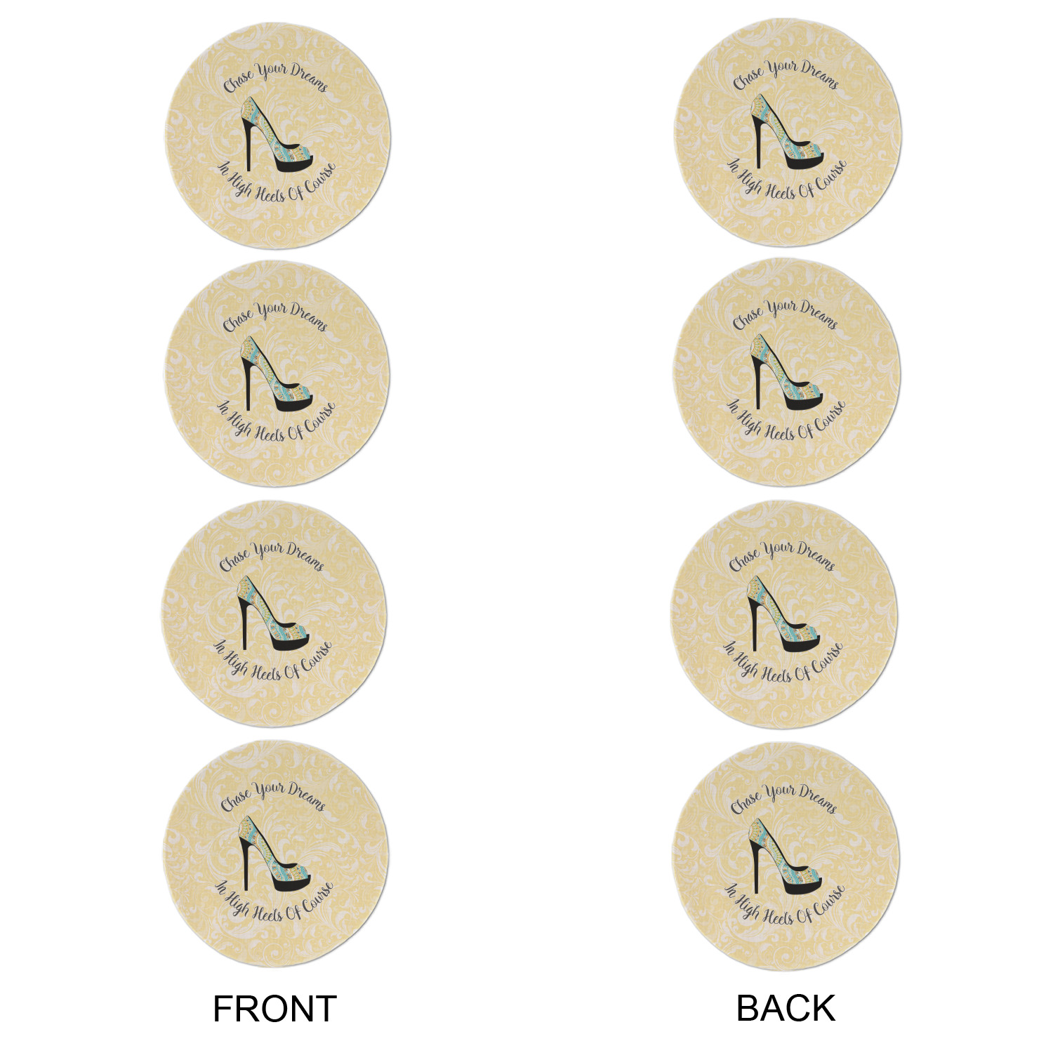 This High Heels Design with "Chase Your Dreams in High Heels Of Course" is simply beautiful. The design has a soft yellow leafy swirls background. The foreground is a beautiful stiletto high heel shoe filled with our abstract snakes pattern. We used our "graphic with arched text" style and have the words "Chase Your Dream" on top and "In High Heels of Course" on the bottom.