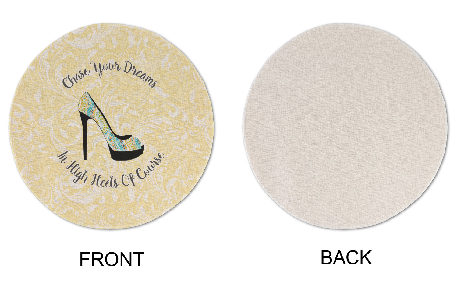 This High Heels Design with "Chase Your Dreams in High Heels Of Course" is simply beautiful. The design has a soft yellow leafy swirls background. The foreground is a beautiful stiletto high heel shoe filled with our abstract snakes pattern. We used our "graphic with arched text" style and have the words "Chase Your Dream" on top and "In High Heels of Course" on the bottom.