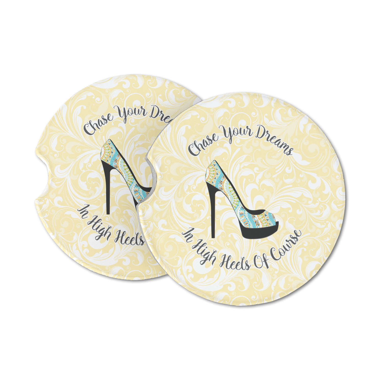 These sandstone coasters are round, robust, and feature a smoothed glossy side to exhibit your customized design. With a 2.5 inch diameter, these stone coasters will fit snugly inside most cup holders. This model also features a semi-circle shaped divot that allows for easy removal, despite the tight fit. You can purchase these car cup holder coasters in a pair, or singularly, depending on your needs.