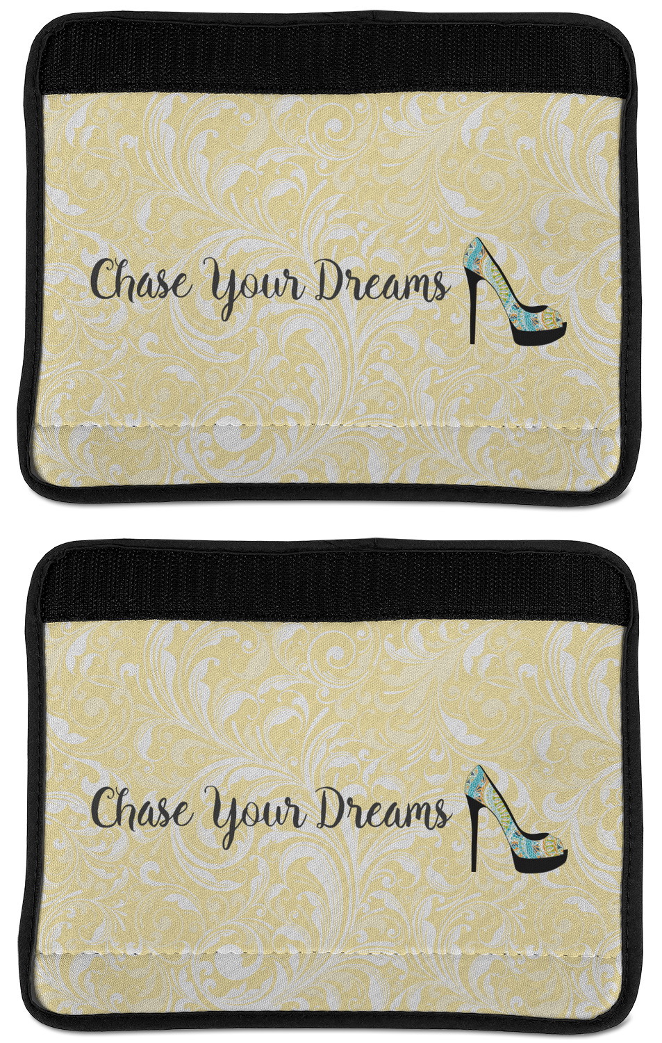 Made from neoprene, our seat belt strap covers wrap around the belt itself and have a Velcro tab for easy attachment and closure. The belt's edges are trimmed with a black polyester for a secure finish. Each cover is 9.5 by 7 inches when open and 9.5 by 2.5 inches when closed. We print your personalized design on the face of the seat belt pad.