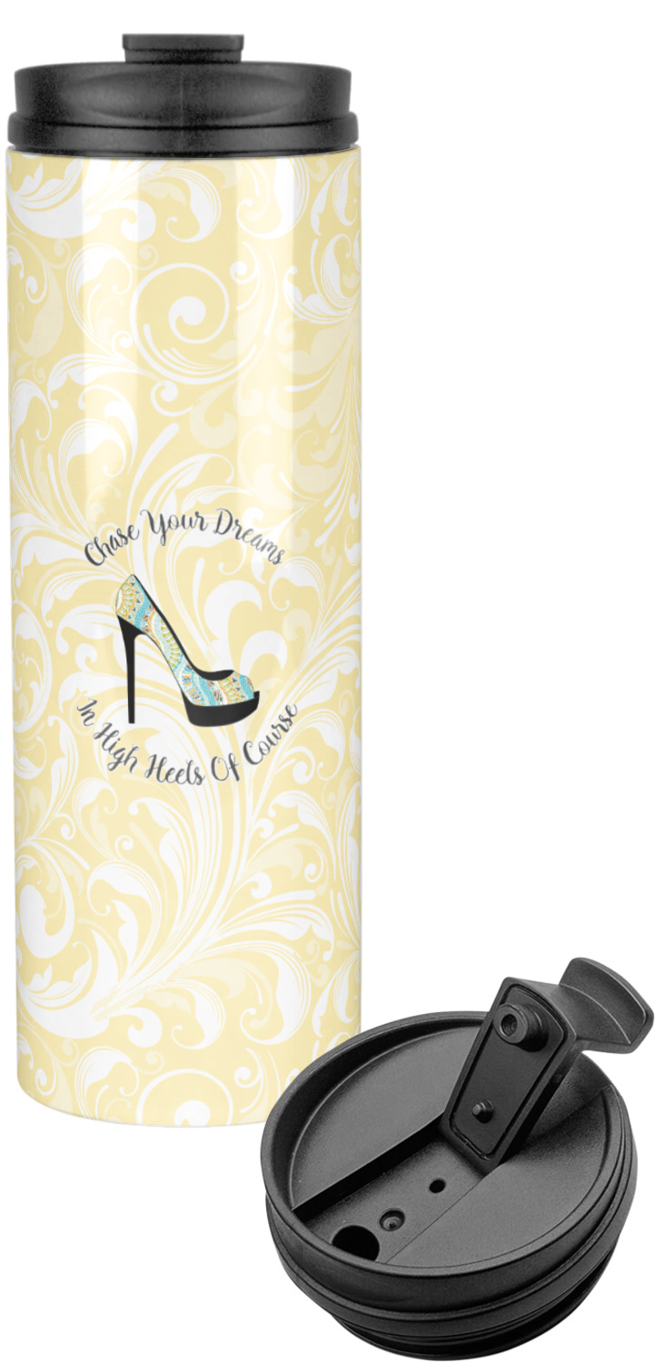 Sip your favorite drink on the go with your own custom stainless steel tumbler! Our slim cylinder shape is perfect for holding your drink in hand, in your purse, or in your backpack! This sleek and modern tumbler is a perfect gift for coffee and tea lovers keeping their drinks just the right temperature throughout the day! We offer two sizes, a 16 oz. or 20 oz., to personalize. Browse and customize or design or create your own with our online design studio!