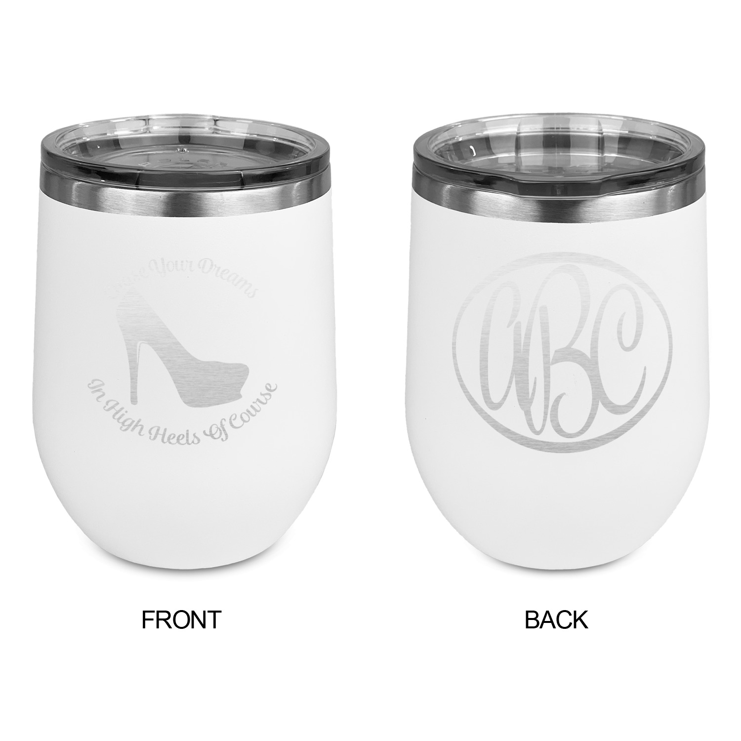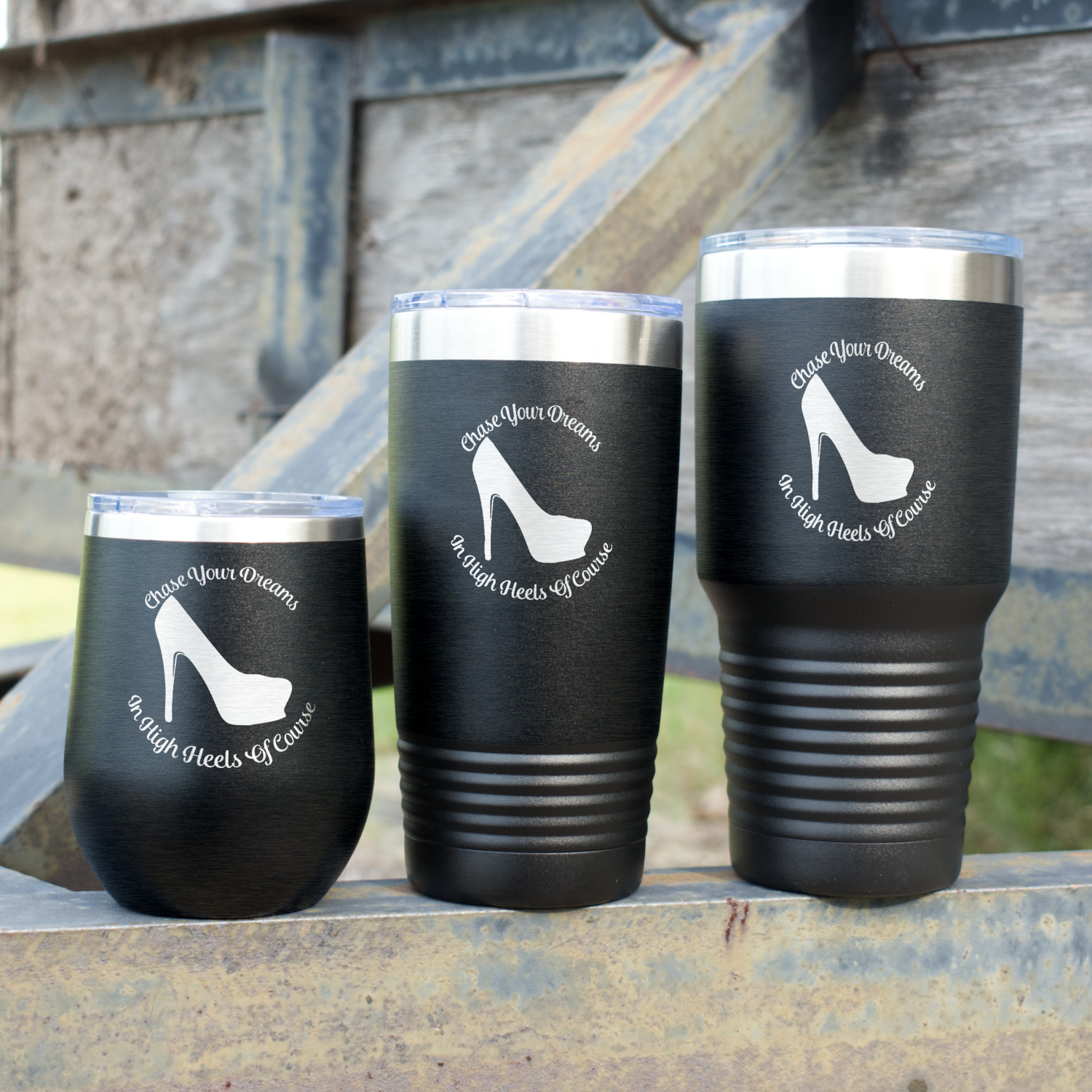Design your wine tumbler with a cool graphic or quote. Even put your initials or monogram! These cups are laser engraved, which looks extra sharp on the metal tumbler.