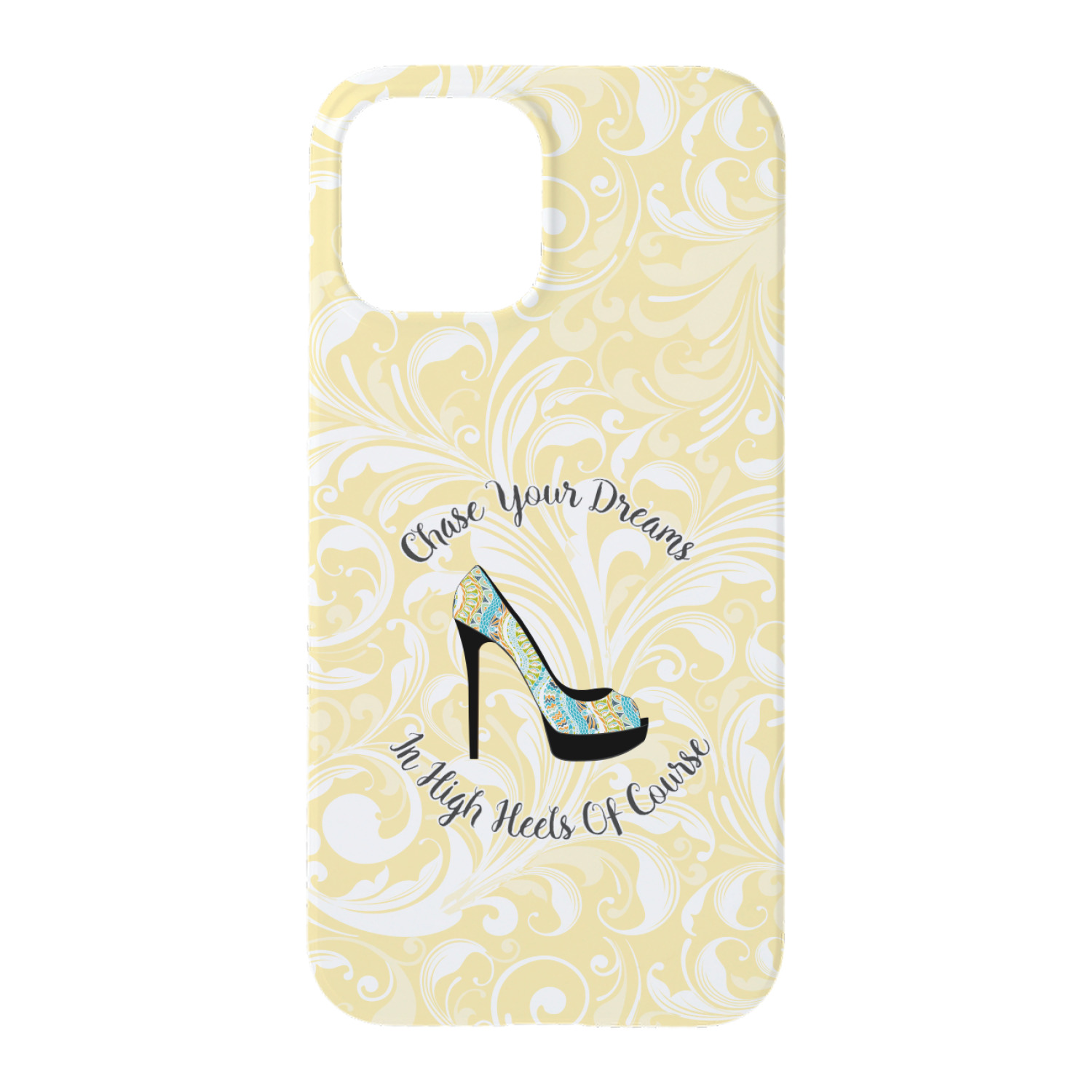 This High Heels Design with "Chase Your Dreams in High Heels Of Course" is simply beautiful. The design has a soft yellow leafy swirls background. The foreground is a beautiful stiletto high heel shoe filled with our abstract snakes pattern. We used our "graphic with arched text" style and have the words "Chase Your Dream" on top and "In High Heels of Course" on the bottom.