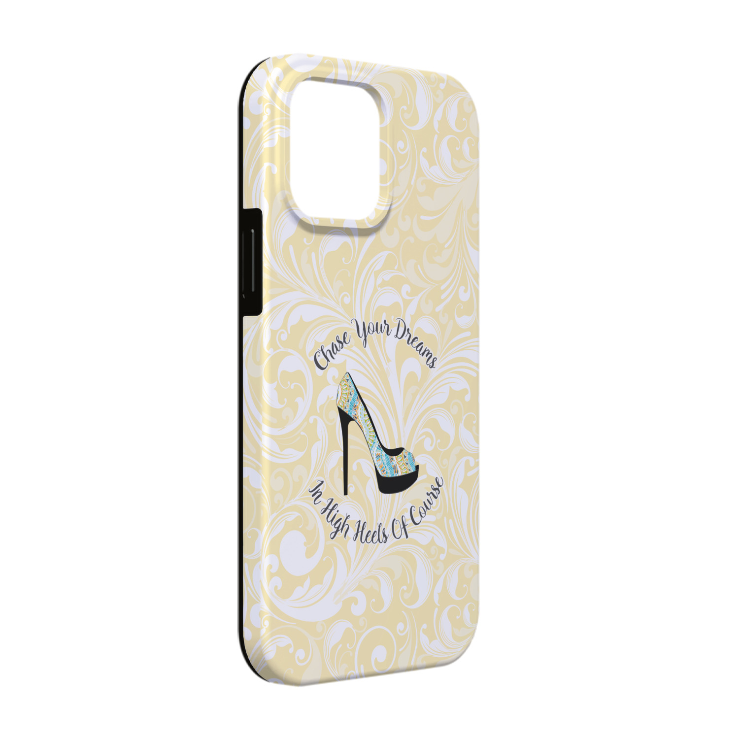 This High Heels Design with "Chase Your Dreams in High Heels Of Course" is simply beautiful. The design has a soft yellow leafy swirls background. The foreground is a beautiful stiletto high heel shoe filled with our abstract snakes pattern. We used our "graphic with arched text" style and have the words "Chase Your Dream" on top and "In High Heels of Course" on the bottom.