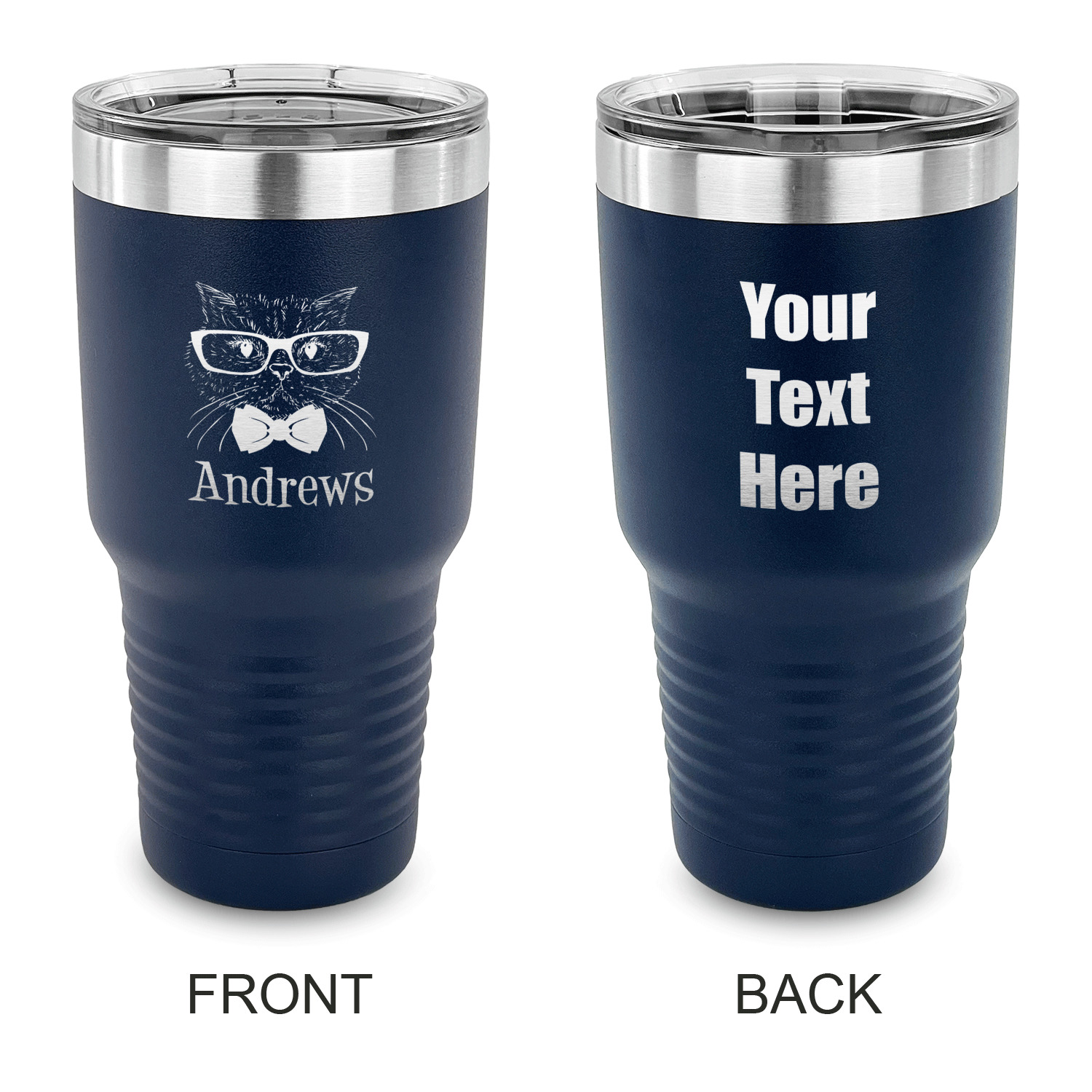 With the 5 colors - Black, Navy, Red, Pink and Coral, you are sure to find a cup to fit your personality. You can chose to engrave on the front or the front and back of the cup. Use our design studio to design your own cup and we laser engrave it for you.