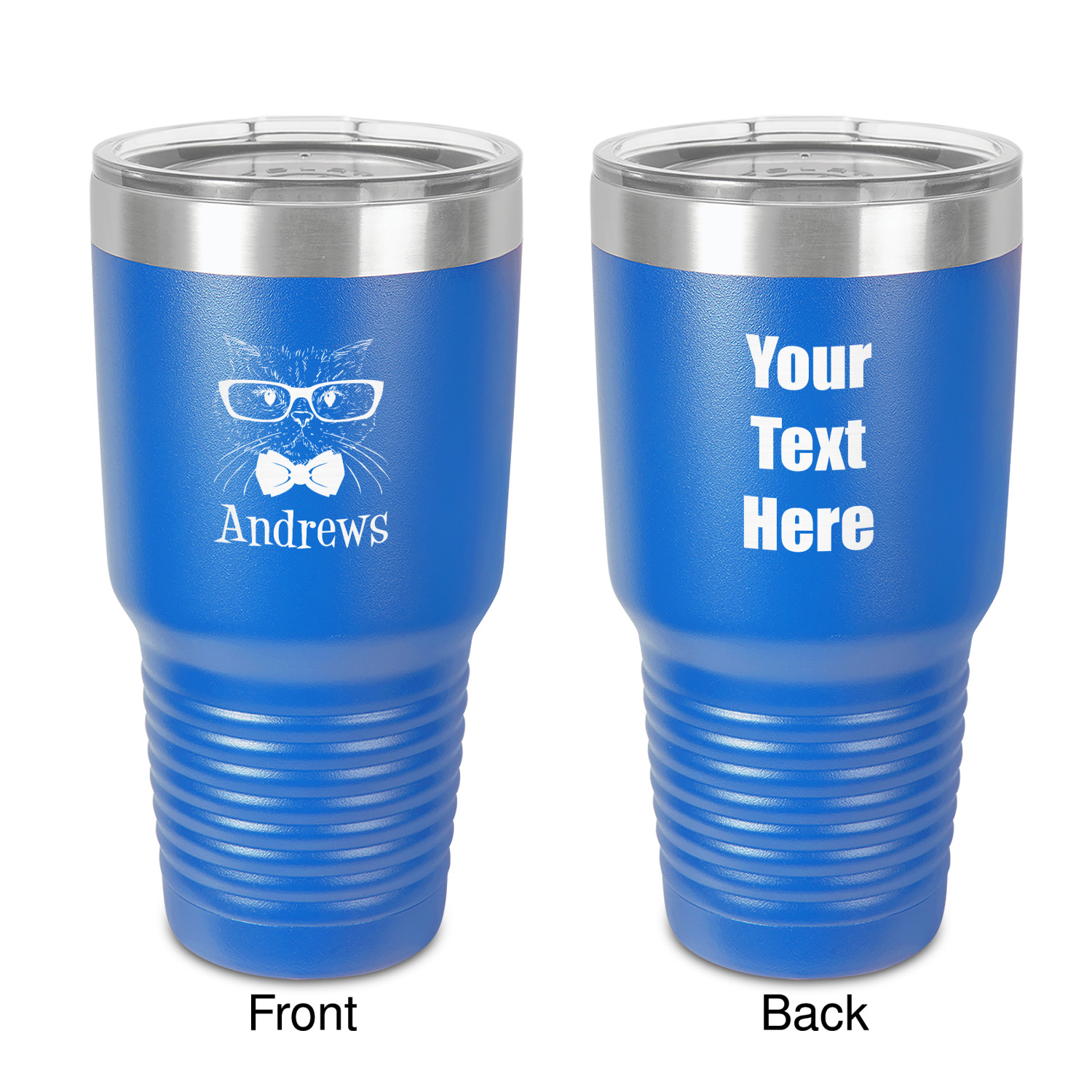With the 5 colors - Black, Navy, Red, Pink and Coral, you are sure to find a cup to fit your personality. You can chose to engrave on the front or the front and back of the cup. Use our design studio to design your own cup and we laser engrave it for you.