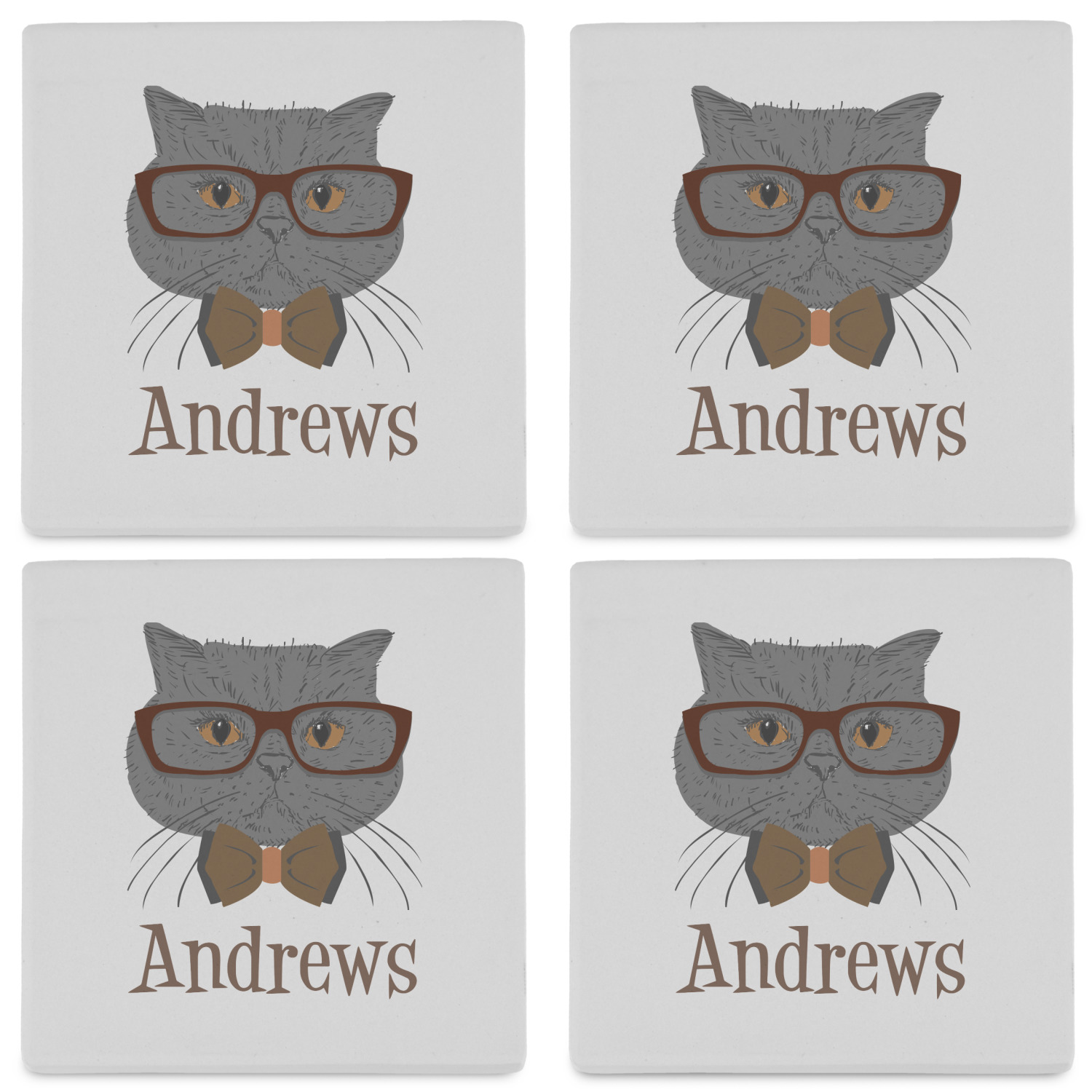 By default, the 4 coasters all have the same design on them, however, you can change that and have a different design on each one of the 4 coasters. The choice is yours.