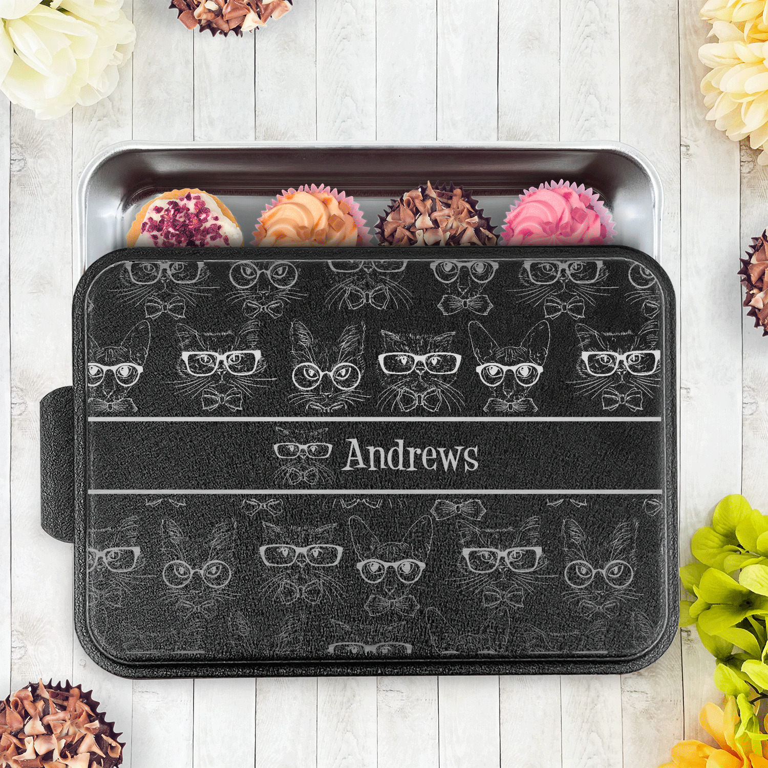 With the lid laser etched with the design of your choice these get the fully customized touch unique to you. The possibilities are endless when you go to design your own cake pan lid. With our design library you can make the design of your dreams come true.