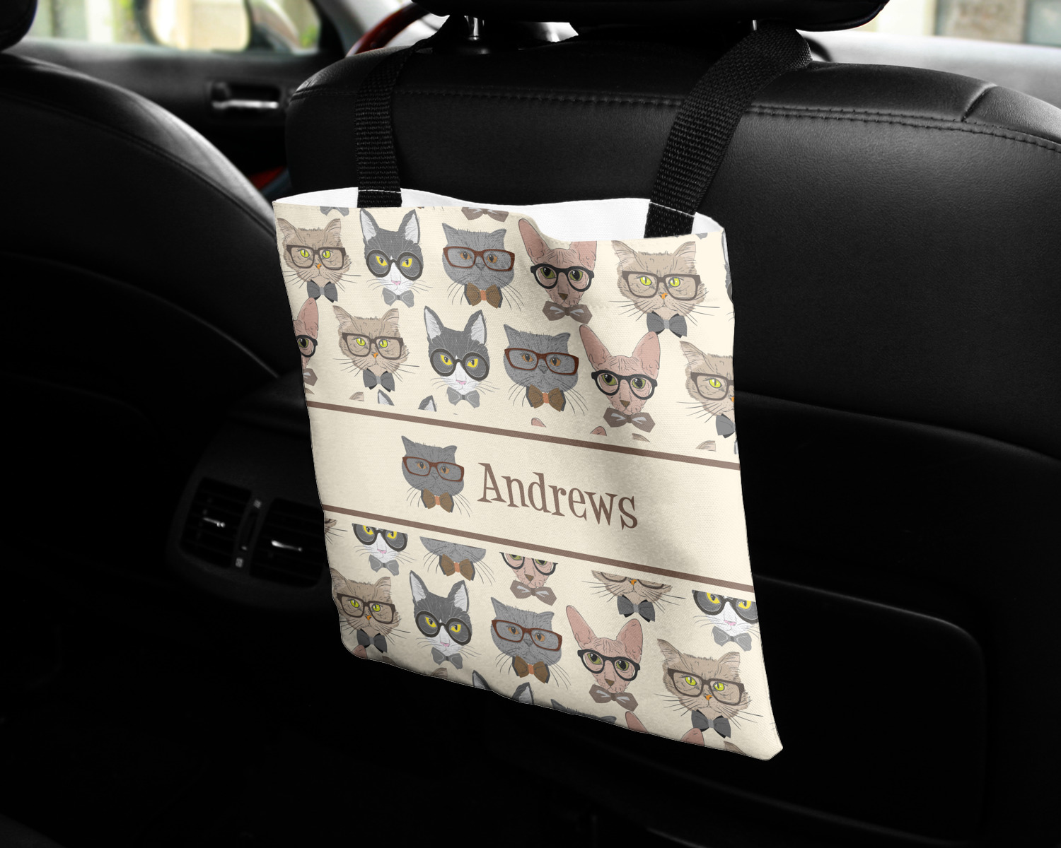 These car back seat organizers are sturdy tote-like bags, fabricated from a robust polyester, and features a single handle on the back side. The strap features an attachable velcro for easy attachment to headrests, grocery carts, car seats, and more. Simply undo the velcro, loop the strap around the headrest, reattach the velcro, and let the organizer hang from the front seat. These car organizers are the perfect means of increasing your backseat's legroom, while storing multiple items in one place for better accessibility. Each car back seat organizer measures at 10 by 10 inches, and features your personalized design printed across its front and back.