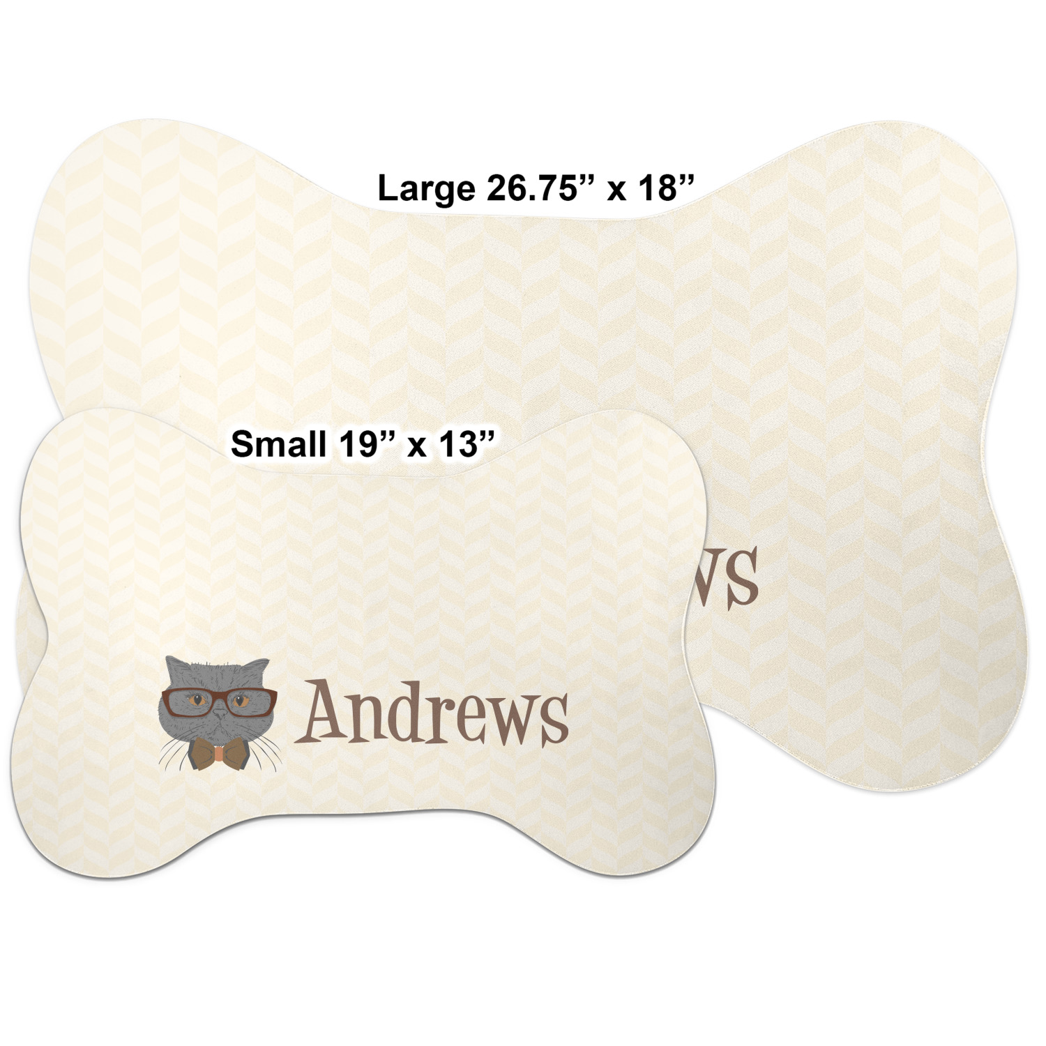 The bone-shaped dog bowl mat is the perfect way to add a touch of personality to your dog's eating area! Dogs make inevitable messes, especially when they eat and drink. Save the integrity of your floors and the time spent cleaning them by purchasing a personalized mat that catches spills!