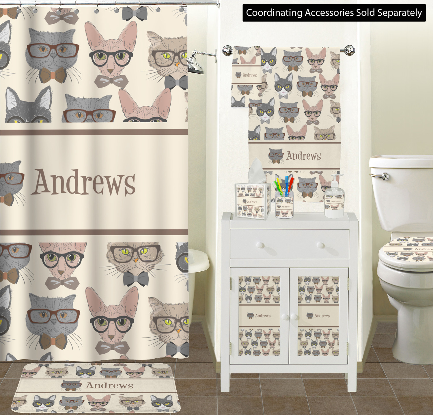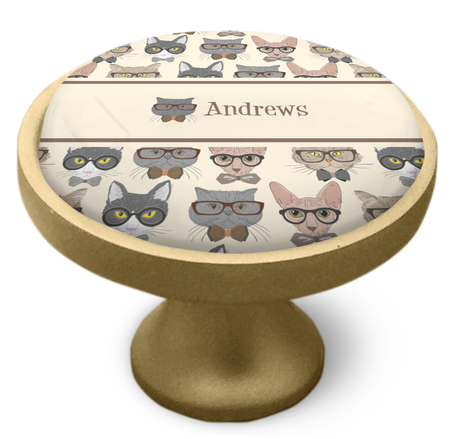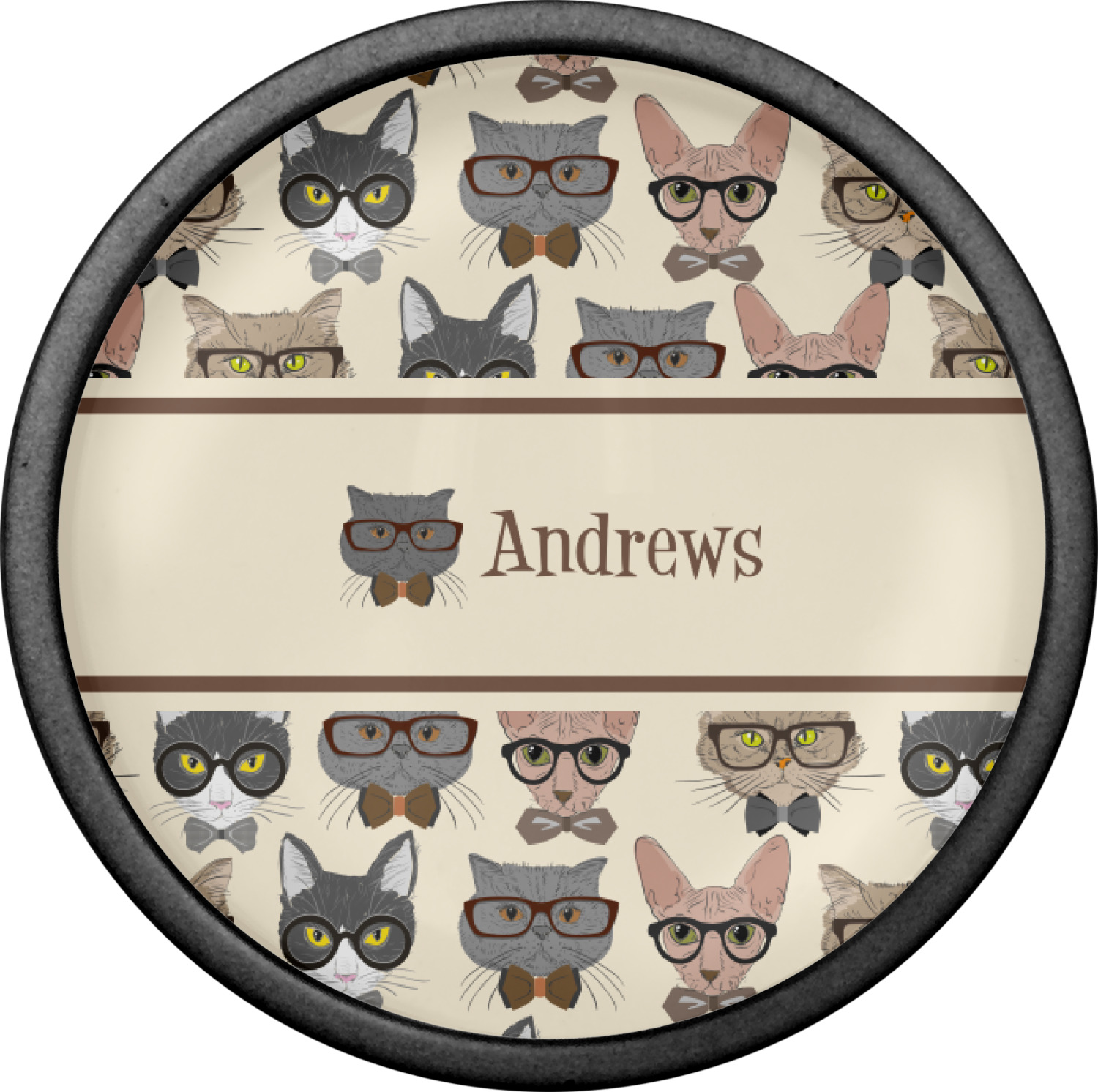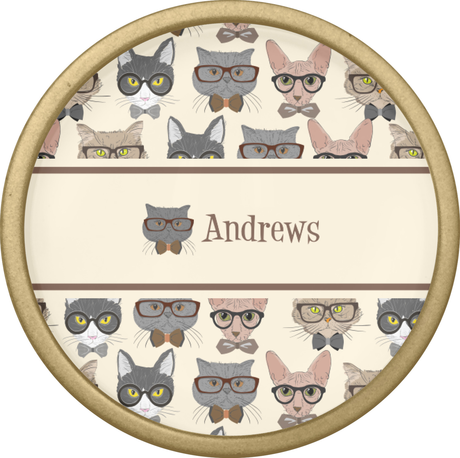 We chose a classic ribbon in vintage brown along with an image of one of the cats (all 4 cats are available) and name for personalizations.