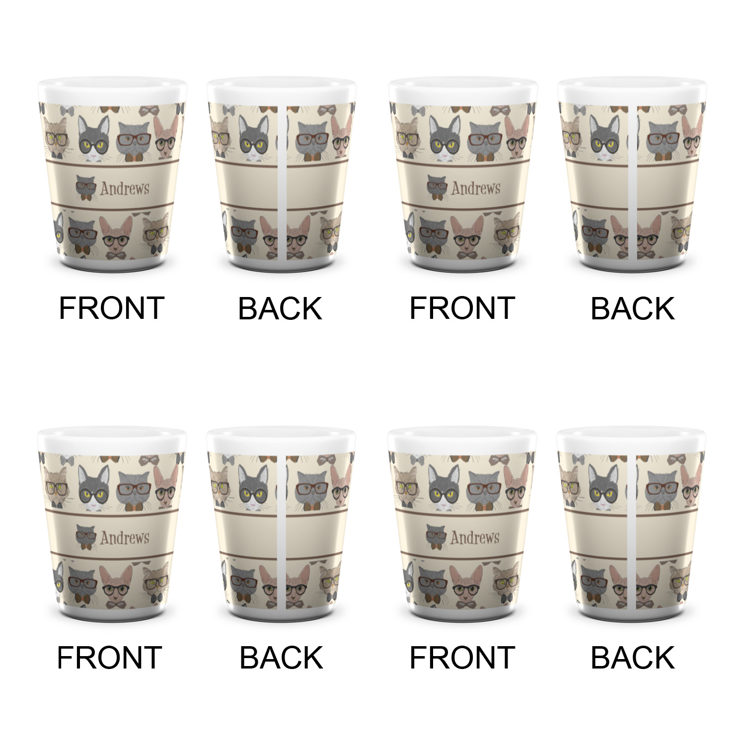 Made from ceramic these shot glasses are printed in full color with the design of your choice. These are a standard 1.5oz size and stand 2.25" tall. Available in a full white ceramic or a two-tone with a black color inside the shot glass. Buy a single or a set of 4, all of which can be designed separately to get you just what you want and need.