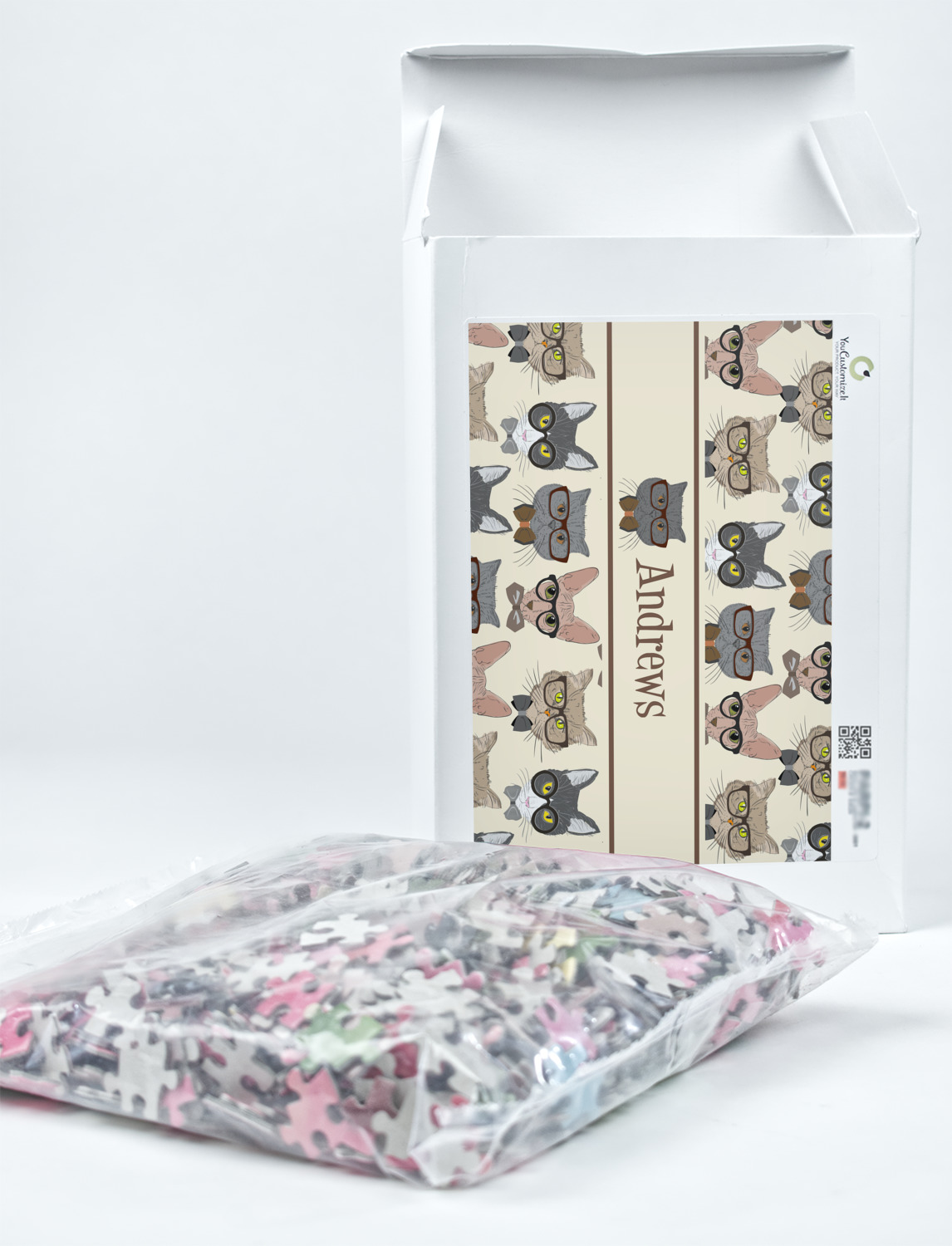 You can also upload your logo or art that you or your kids drew. To create more challenging jigsaw puzzles, you can create a pattern from with your logo or artwork. You can also add other elements such as text or personalization.