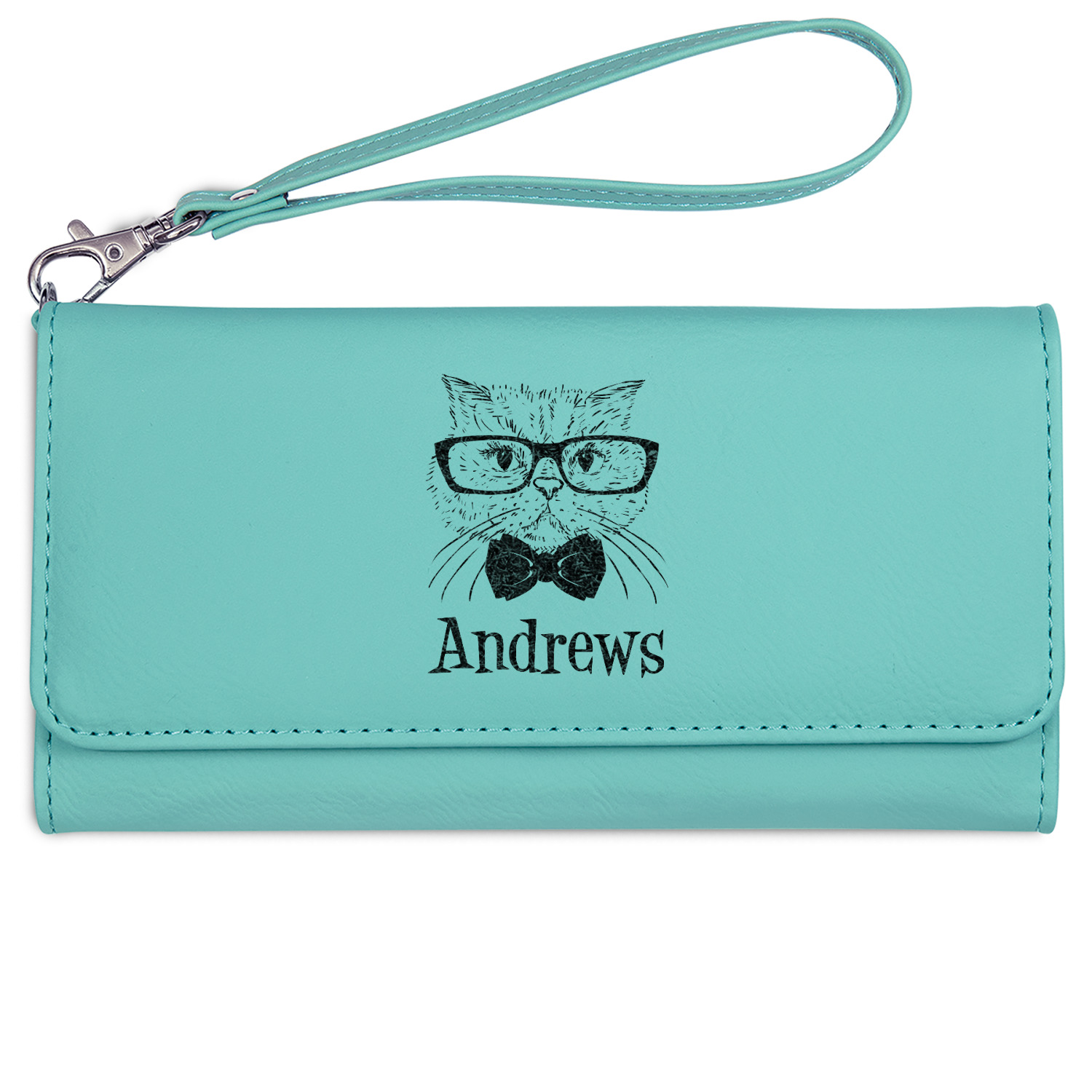 These personalized ladies leather wallets are available in 2 colors - rawhide / cognac and teal.