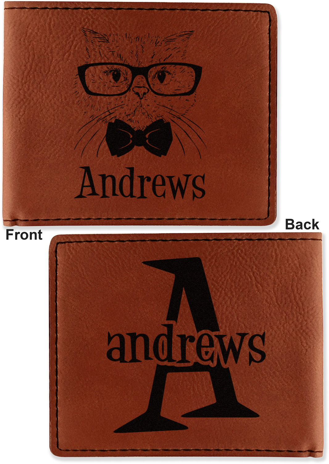 Your bifold wallet will be personalized by laser engraving, which will be a black color on the wallet. Choose a graphic, text, or monogram to personalize your wallet. There are thousands of choices in our design center.