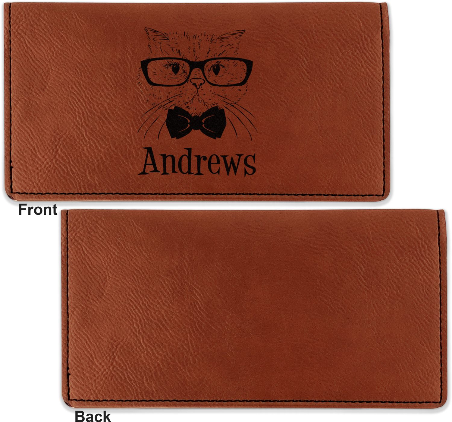 Go into our design center to start personalizing. Your checkbook cover will be laser engraved, making the graphic or text a black color. Choose a fun saying, monogram, or font to go on your checkbook cover. You have the opportunity to do it double or single sided.