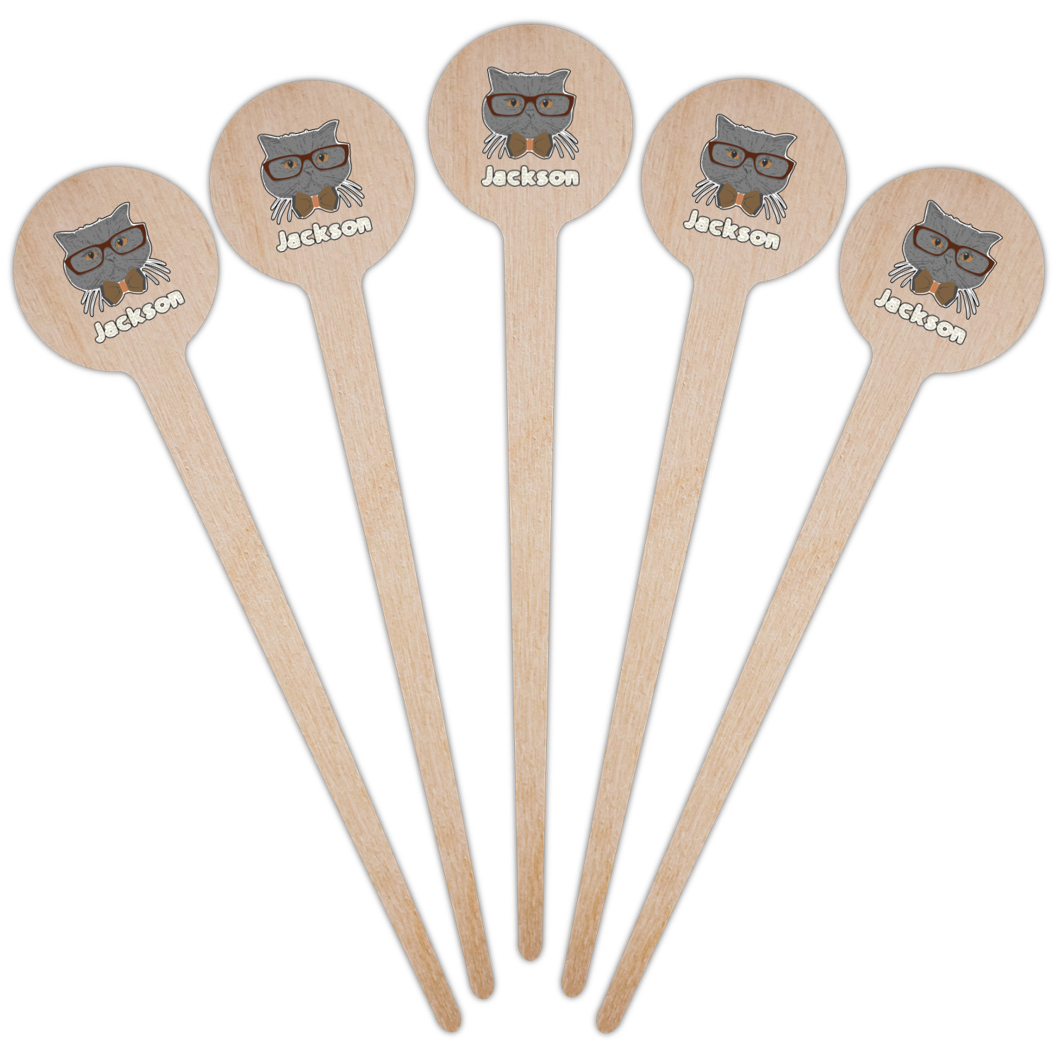Mustache & Lip Designs for 4" Round Wooden Food Picks - Single-Sided