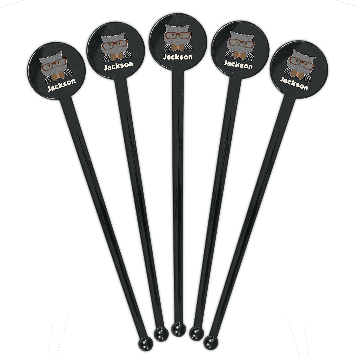 Shape + Symbol Designs for 7" Round Plastic Stir Sticks - Black - Single-Sided