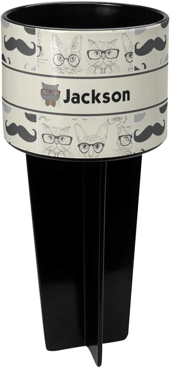 This cup holder has a large stake at its bottom that anchors it to the sand or ground below, while the cup holder rests above the stake. The entire drink holder is made of durable plastic and displays your customization around the cup holder portion. We sell these personalized beach spikers in two different colors: black and white.