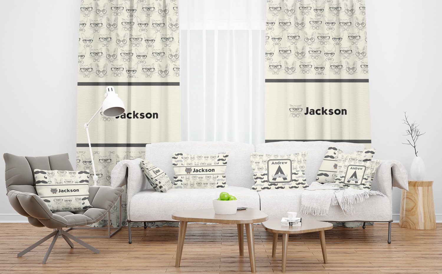 This design is perfect for the hipster in your life. It combines hipster cats with mustaches to make the perfect all around hipster design. We have used two different backgrounds - the hipster cats and the mustache print. We chose the sophisticated color palette of cream and grey tones. The design is fully re-color-able - so you are free to change it to any colors you like - we also really like the vintage cream and brown tones..