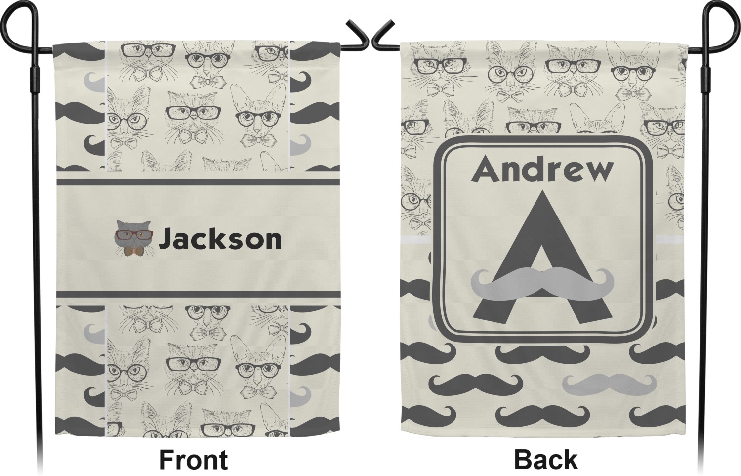These custom garden flags are made of a durable, double-ply, polyester weave, allowing them to withstand the elements year round. The small flags measure at approximately 12 by 18 inches. The large flags measure out to 28 by 37 inches. You can order these decorative flags with your customization printed on the front only, or the front and back.