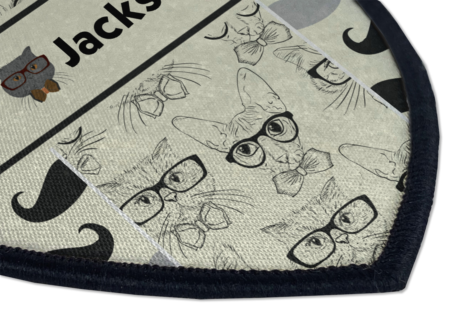 We chose the graphic & text on ribbon style for the main design; a chose a full color graphic of one of the cats.