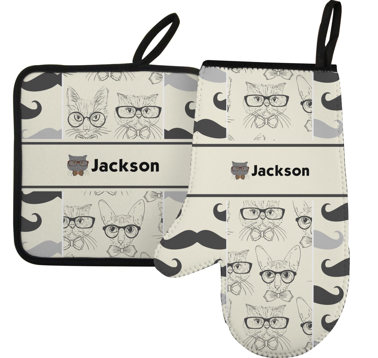 Mustache & Lip Designs for Left Oven Mitt & Pot Holder Sets